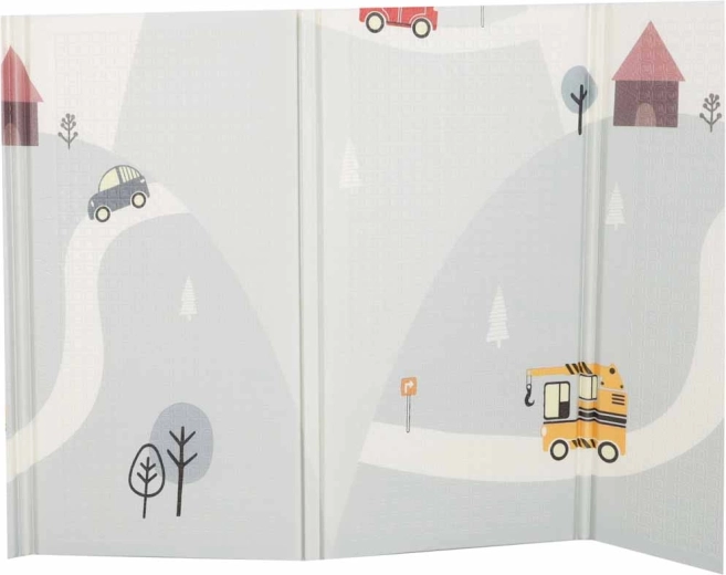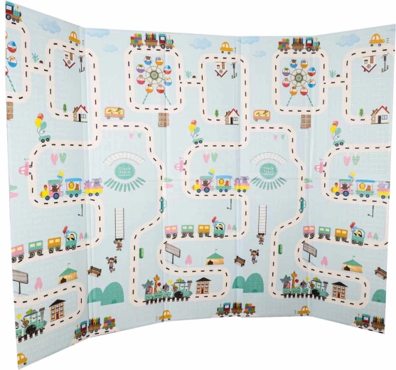 Ce tapis en mousse de haute qualité est conçu pour un jeu quotidien sûr et confortable. La couche élastique et douce amortit efficacement les chutes, les sauts et les premiers mouvements hésitants, tandis que la texture antidérapante, légèrement structurée assure la stabilité sur le sol. L’impression réversible avec un motif de rues et de petite ville d’un côté et un discret motif paysager pastel de l’autre stimule l’imagination tout en s’intégrant aux intérieurs modernes.