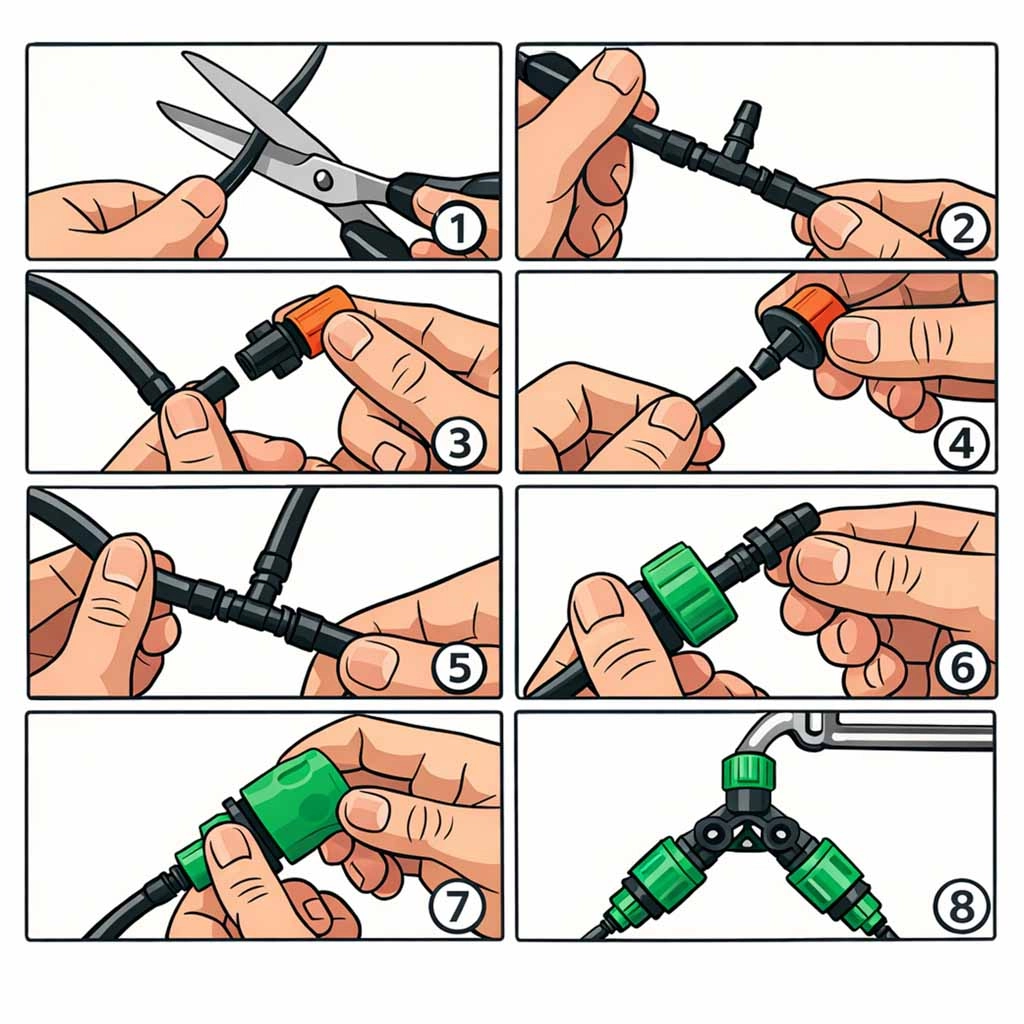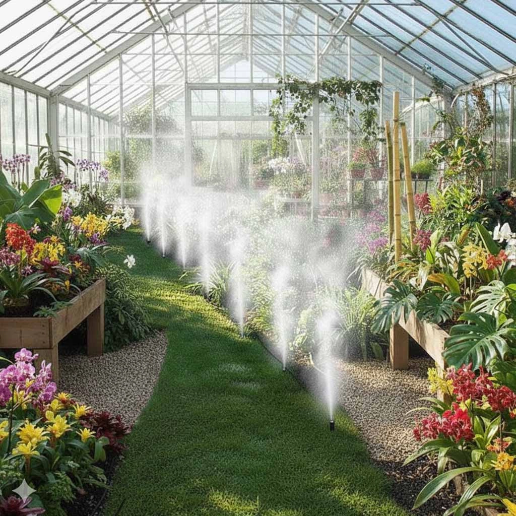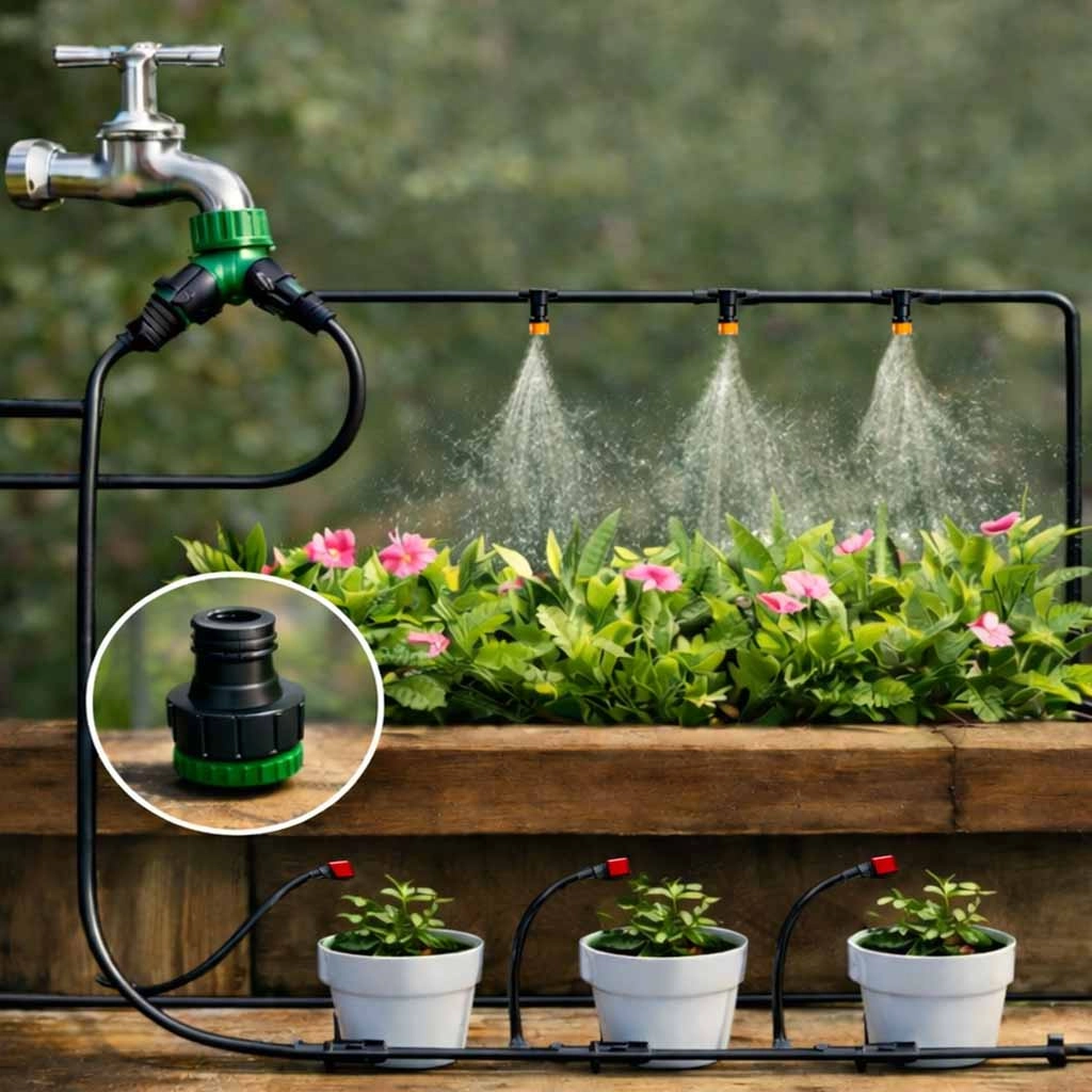 L’installation est rapide et intuitive grâce aux raccords rapides, au répartiteur en Y et au vaste jeu de connecteurs. Idéal pour les terrasses, balcons, pergolas et serres, le système assure un arrosage homogène et un climat agréable sans brassage de poussière ni de pollen. Les matériaux résistants ABS et PVC garantissent fiabilité et longue durée de vie.