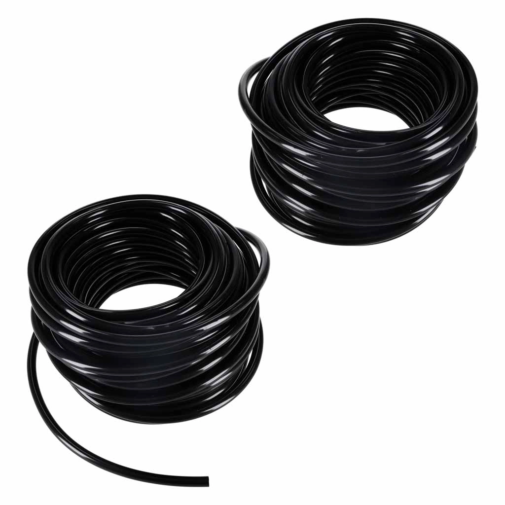 Deux bobines de 12,5 m de tuyau flexible, des dizaines de connecteurs en T et de piquets pour un guidage et un branchement aisés – adaptez la disposition exactement à vos massifs.