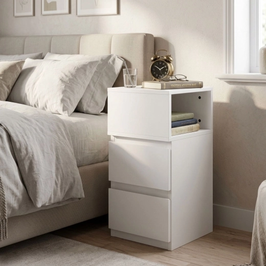 Rangez tout le nécessaire : deux tiroirs spacieux pour un ordre impeccable et un compartiment ouvert supérieur pour garder livres, lunettes ou téléphone à portée de main.