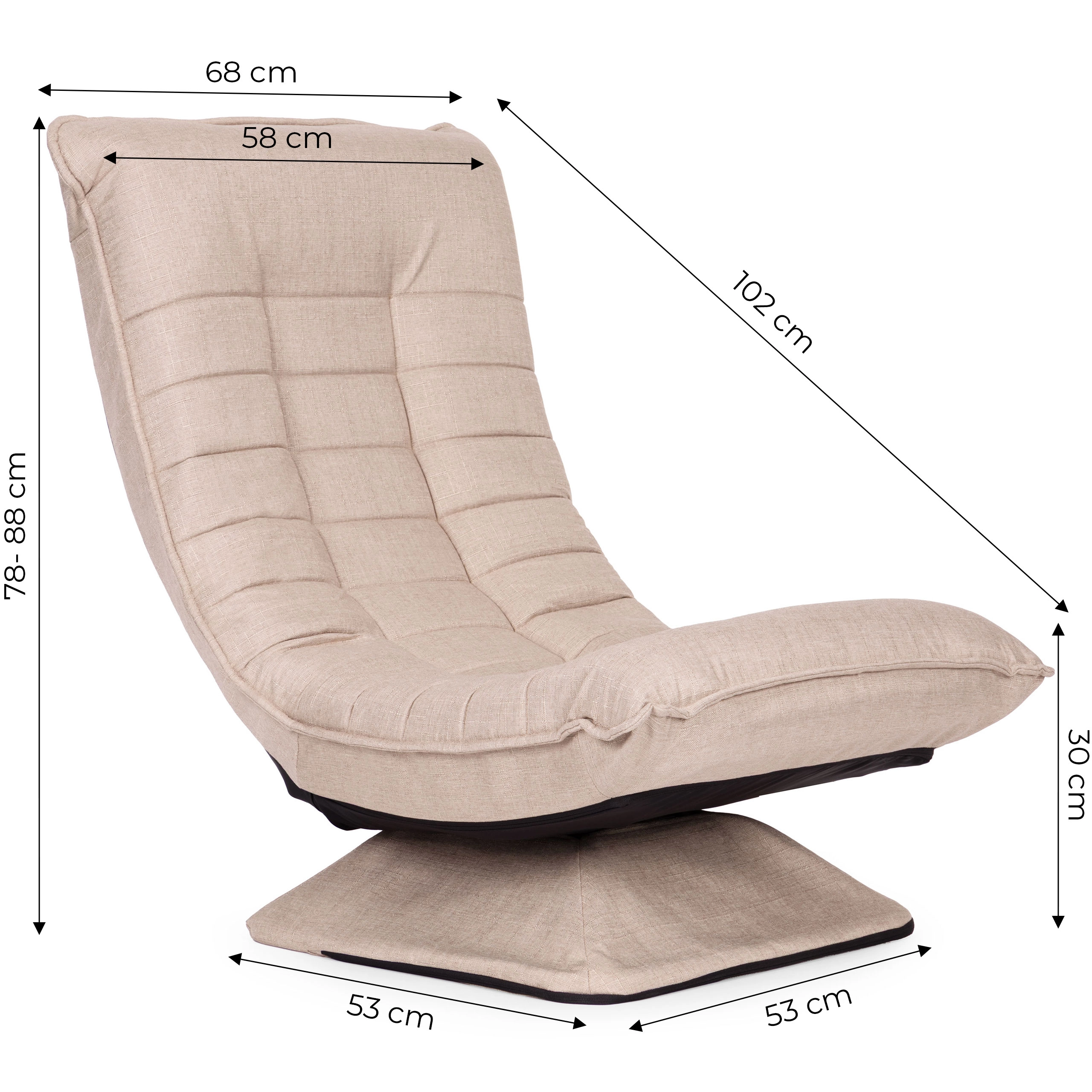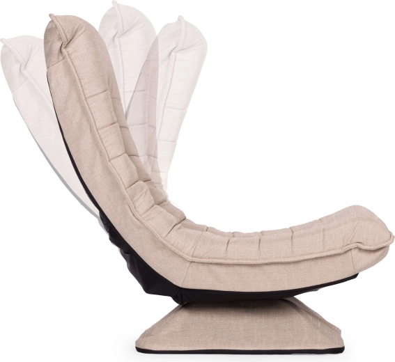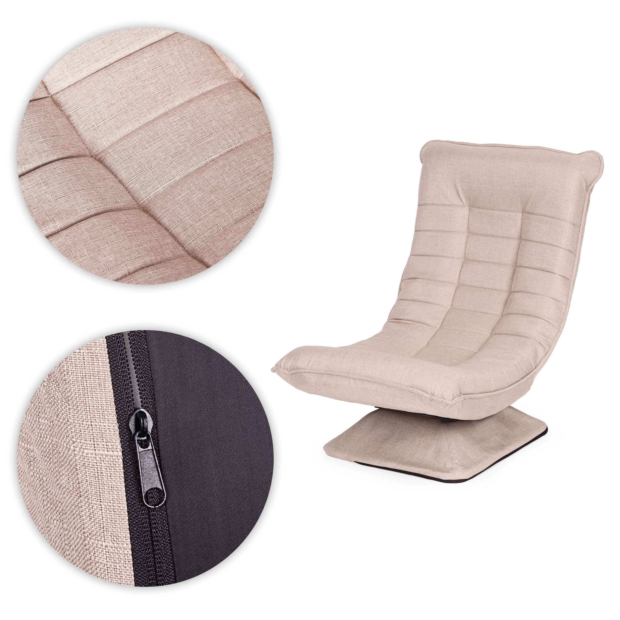Profitez d’un moment de détente quotidien dans un fauteuil lounge confortable avec base pivotante à 360°, dossier réglable sur 4 positions et rembourrage moelleux en mousse. Le revêtement beige en tissu effet lin avec surpiqûres décoratives et housse facilement amovible s’intègre parfaitement aux intérieurs modernes. Idéal pour la lecture, la relaxation et les jeux sur console, avec une capacité de charge de 150 kg.