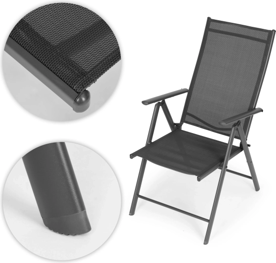 La structure pliable fait gagner de la place au rangement et facilite le transport au chalet, à la piscine ou en pique-nique. Des embouts de pieds protecteurs préservent la terrasse et le sol des rayures, tandis que le cadre peint par poudre améliore la résistance aux intempéries.