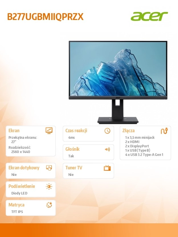 Profitez d’une image fluide sur un moniteur 27" avec résolution QHD et technologie IPS. Grâce au taux de rafraîchissement de 120 Hz, aux larges angles de vision et à la connectivité riche 2× HDMI et DisplayPort, il est idéal pour le travail, le divertissement et le multimédia. Le pied ergonomique avec réglage en hauteur et inclinaison et la gestion pratique des câbles assurent un confort au quotidien.