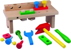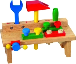 Le set contient tout le nécessaire pour un jeu sûr et amusant : tournevis, marteau, clé, écrous et vis. Le tout est fabriqué en bois de qualité avec une surface lisse pour une utilisation agréable et sécurisée. Emballé dans une boîte en carton, idéale aussi comme cadeau.
