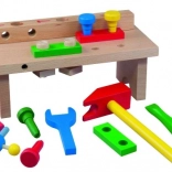 L’établi en bois avec outils Detoa constitue une excellente base pour les petits bricoleurs. Les enfants apprennent à manipuler les outils de base, entraînent la coordination œil-main et développent la pensée logique en vissant et en assemblant.
