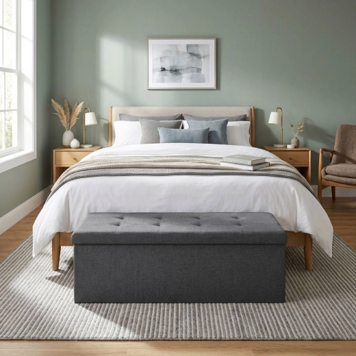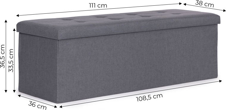 À l’intérieur se trouve un grand caisson à accès facile, complété par une cloison amovible pour organiser clairement les objets rangés. La structure en MDF résistante garantit stabilité et durabilité, tandis que le mécanisme de pliage simple facilite le montage et d’éventuels déplacements.