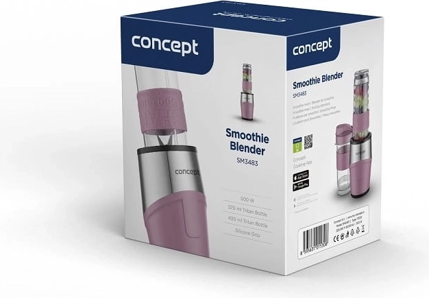 Mixeur smoothie compact d’une puissance de 500 W pour la préparation rapide de boissons directement dans des bouteilles portables. Deux bouteilles en Tritan résistantes avec couvercle et dragonne, verrou de sécurité, base antidérapante et vitesse jusqu’à 23 000 tr/min pour un mixage facile, propre et fiable des smoothies, milk-shakes et cafés glacés.