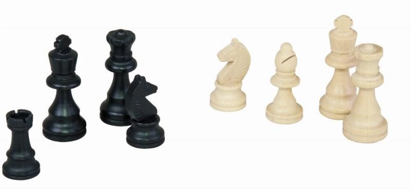 L’ensemble comprend 32 pièces en bois résistantes de forme traditionnelle pour un jeu confortable et une bonne lisibilité sur l’échiquier.