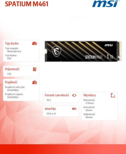 Le SSD MSI Spatium M461 exploite PCIe Gen4 NVMe pour une réactivité système nettement améliorée, des temps de chargement des jeux réduits et une copie rapide des gros fichiers.