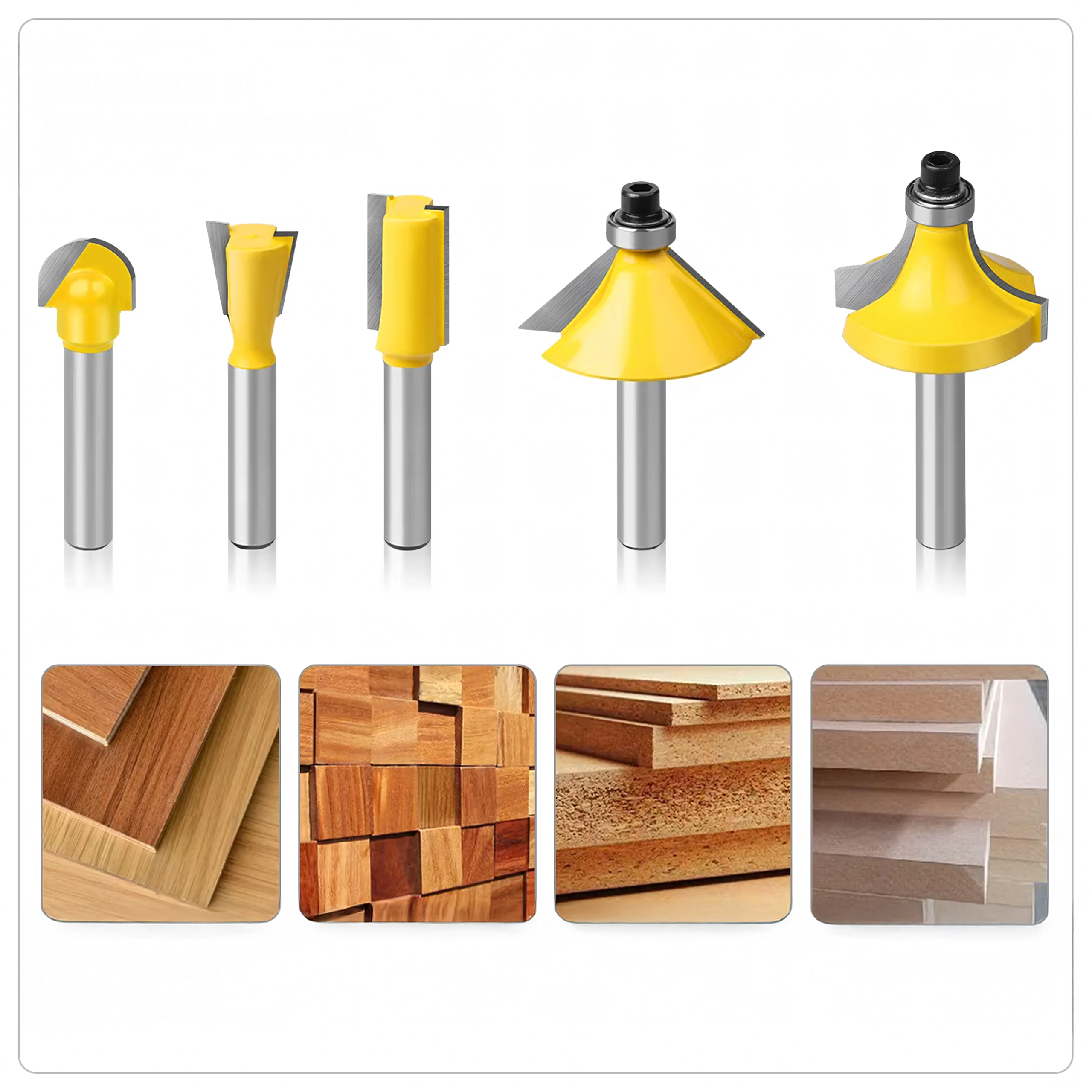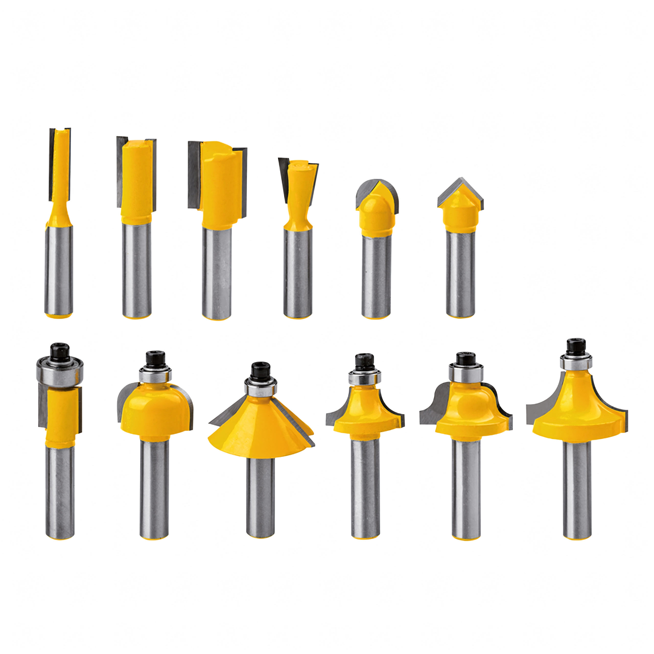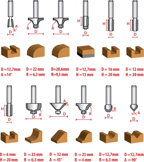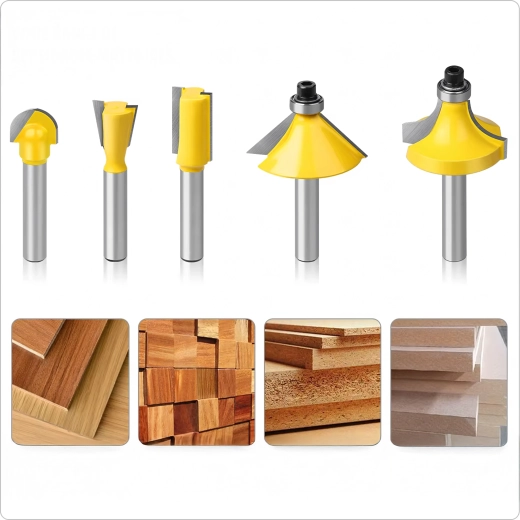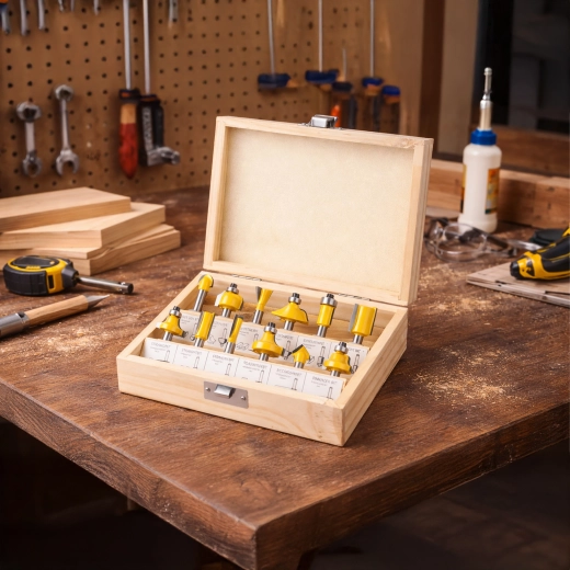 Le set couvre les opérations de menuiserie les plus courantes : arasage, profilage des chants, rainurage et coupes décoratives. Idéal pour le mobilier, les cadres, les moulures et les panneaux.
