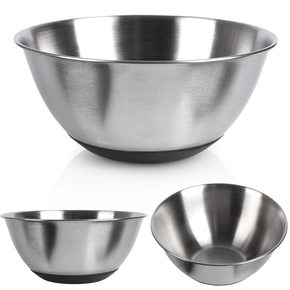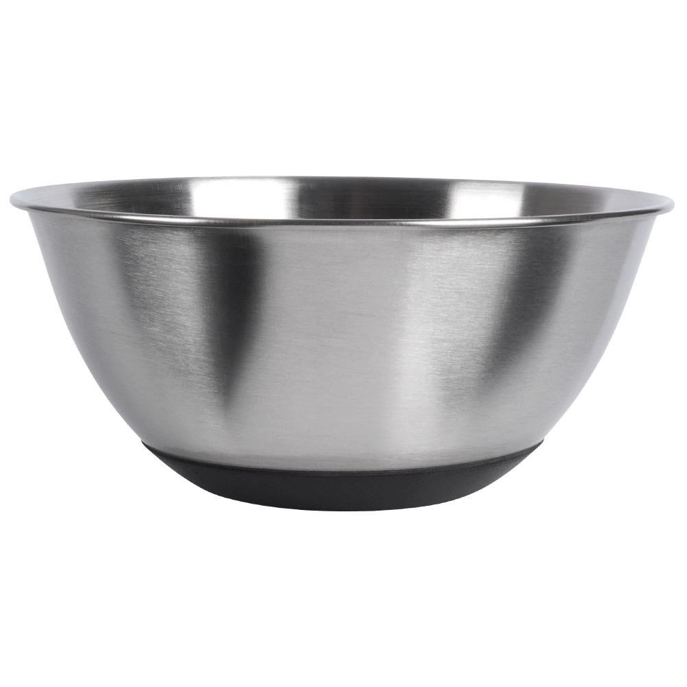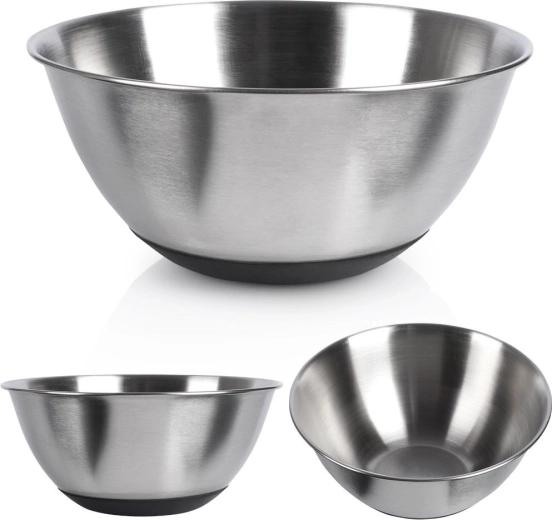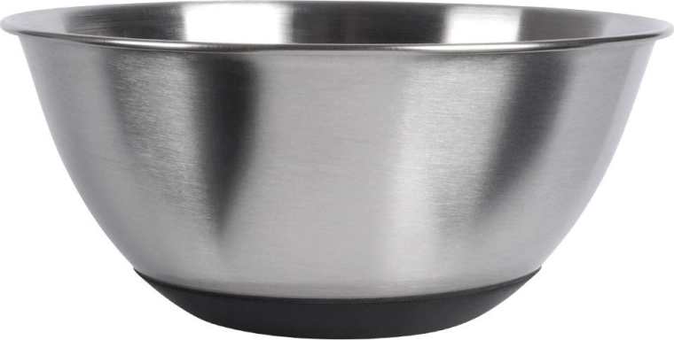 Ce bol polyvalent en inox allie dimensions pratiques, grande résistance et sécurité d’utilisation. Le fond antidérapant noir empêche tout glissement sur le plan de travail, vous permettant de mélanger, fouetter et pétrir en toute aisance. Sa finition mate élégante et sa forme classique en font également un bol esthétique pour un service direct à table.