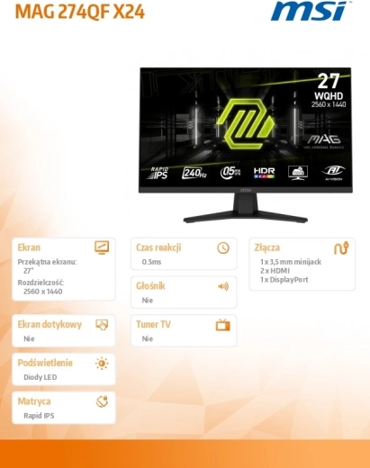 Moniteur 27" MAG 274QF X24, 240 Hz, FHD, plat, noir