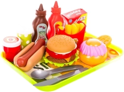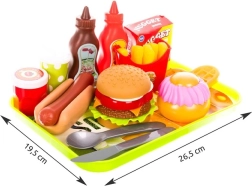 Un ensemble ludique pour petits chefs avec jusqu’à 26 pièces colorées pour jouer au fast-food. Comprend un plateau, un hamburger, un hot-dog, des frites, une gaufre, des boissons et des sauces. Favorise l’imagination, la motricité fine et le jeu partagé avec les parents.