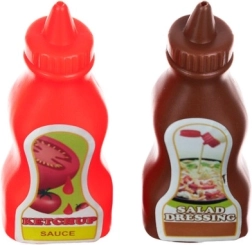 - Plateau, ketchup, sauce chocolat, pain à hot-dog, saucisse, cuillère, couteau, nuggets, confiture, gobelet avec paille, boîte à frites, 5× frite, 2× pain, gaufre, oignon, salade, tomate, tranche de viande, fromage, cupcake, glaçage