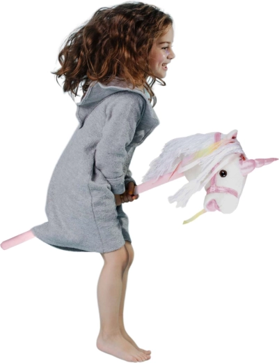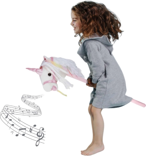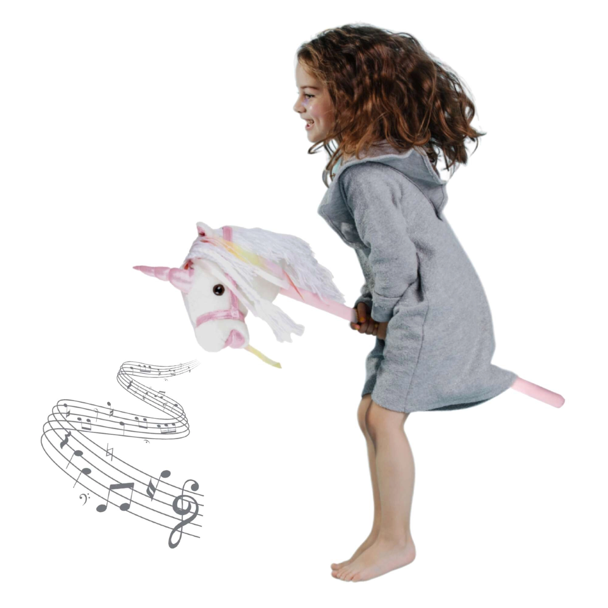 Cette licorne sur bâton encourage le mouvement, l’imagination et le jeu de rôle. La peluche douce est agréable au toucher, la crinière décorative et les rubans apportent une touche féerique à chaque chevauchée. En appuyant sur le bouton dans l’oreille, vous entendrez des sons réalistes de trot et de hennissement qui rendent le jeu d’équitation encore plus vivant pour les enfants.