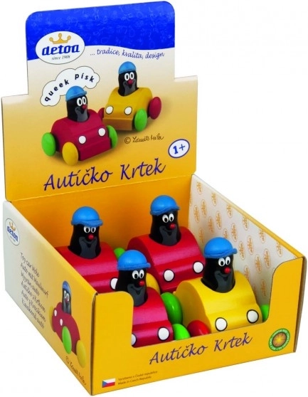Jouet amusant en forme de voiture avec le personnage Taupe, qui émet un sifflement lorsqu'on l'appuie. Idéal pour les enfants à partir de 1 an, fabriqué avec des matériaux sûrs.