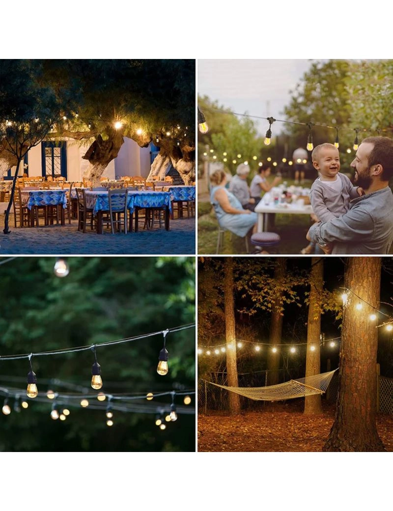 Les ampoules à douille E27 sont remplaçables et offrent une longue durée de vie, ce qui vous permet de garder la guirlande fonctionnelle et esthétique. Des espacements réguliers d’un mètre procurent un éclairage équilibré des terrasses, pergolas, kiosques et terrasses de restaurant.