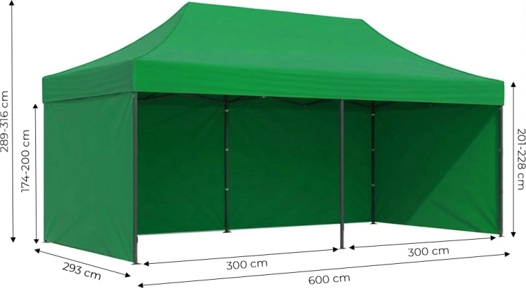 Spacieuse tente de jardin 3×6 m avec armature en acier à déploiement automatique, 4 niveaux de hauteur et bâche PE/PVC résistante. Inclus : 4 parois à velcro, piquets et haubans et sac de transport pratique. Idéale pour le jardin, les événements, les marchés et les présentations d’entreprise.