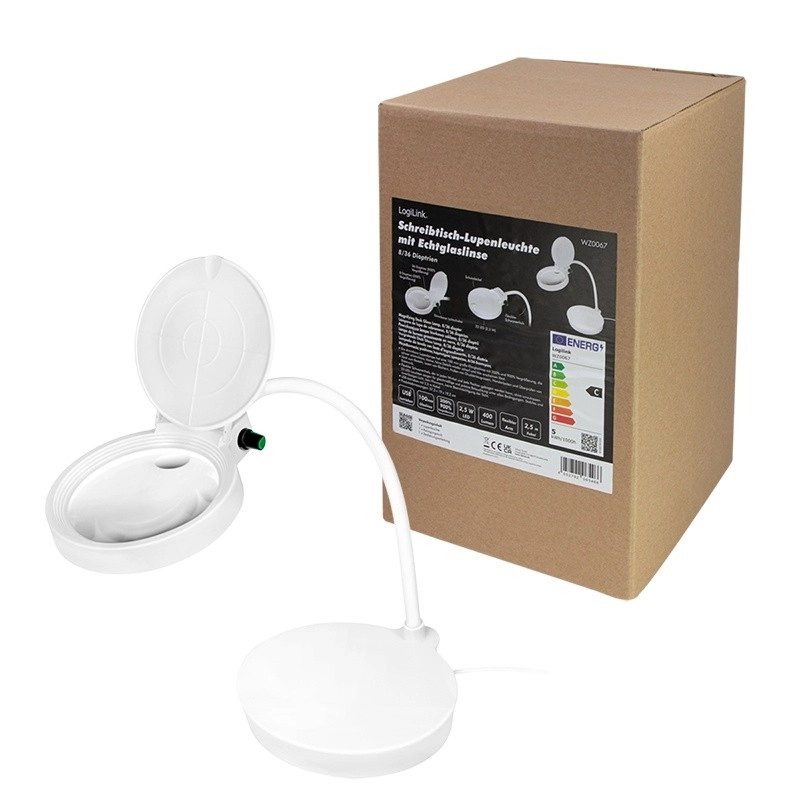 La base robuste et lestée assure une stabilité sur le plan de travail et le capuchon rabattable protège la lentille de la poussière et des rayures. Le design compact avec anneau LED circulaire fournit une lumière uniforme et non éblouissante – idéal pour les maquettistes, horlogers, la lecture de petits caractères ou les réparations électroniques.