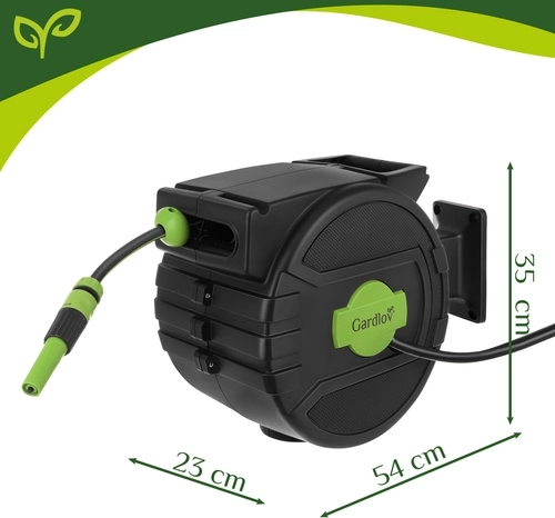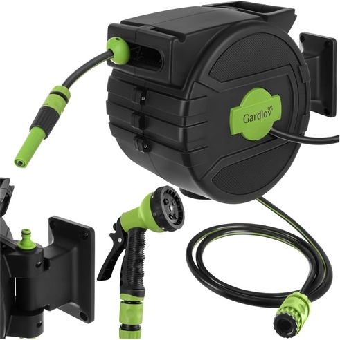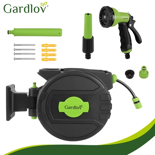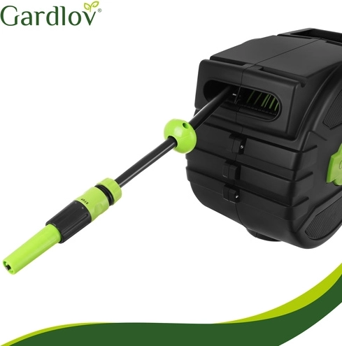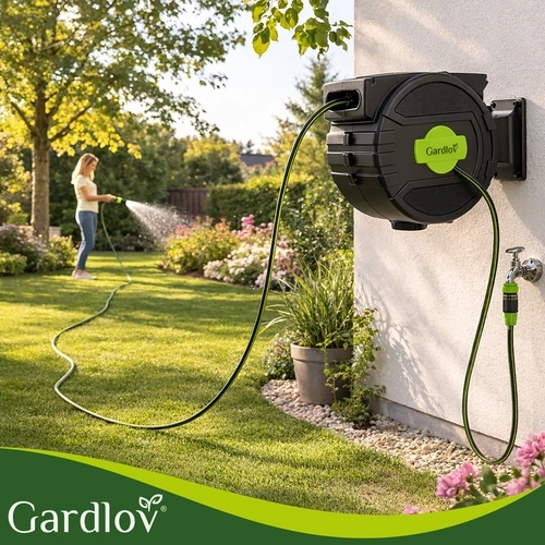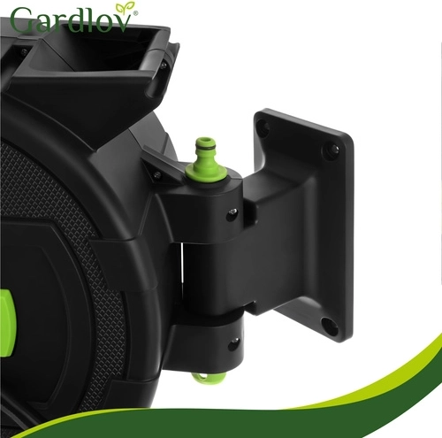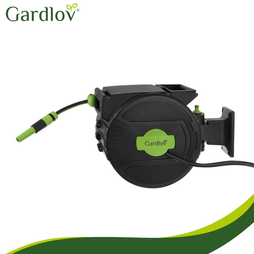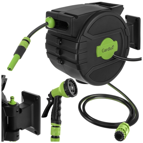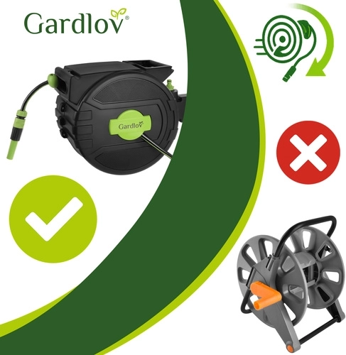 Fini les tuyaux emmêlés et l’enroulement manuel fastidieux. Le dévidoir mural GARDLOV avec tuyau de 20 m offre un enroulement automatique, un verrouillage progressif de la longueur, un support pivotant à 180° et un pistolet d’arrosage à 7 modes. Grâce à la compatibilité avec les robinets 1/2" et 3/4" et à une pression max. de 6 bar, arrosez facilement tout le terrain sans désordre.