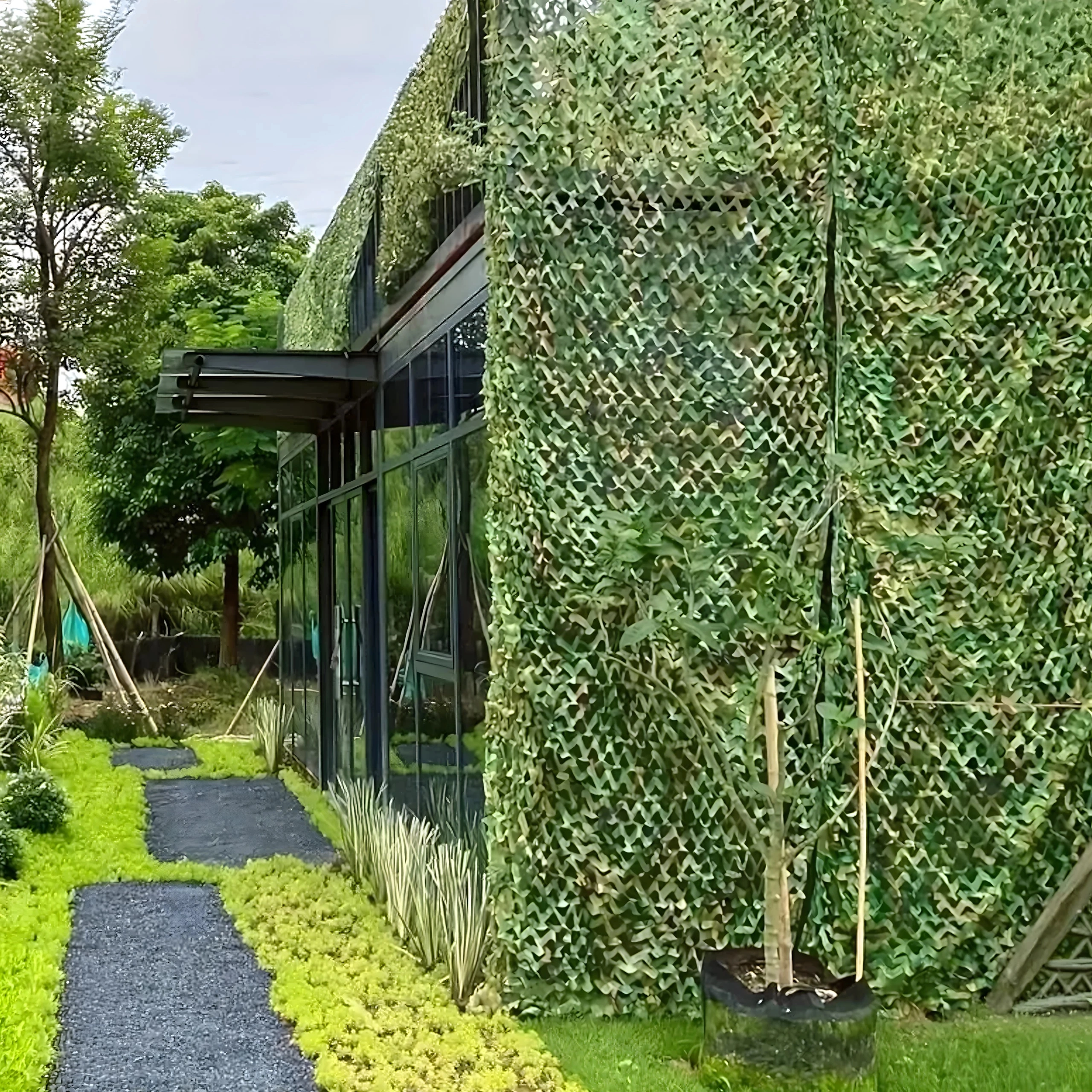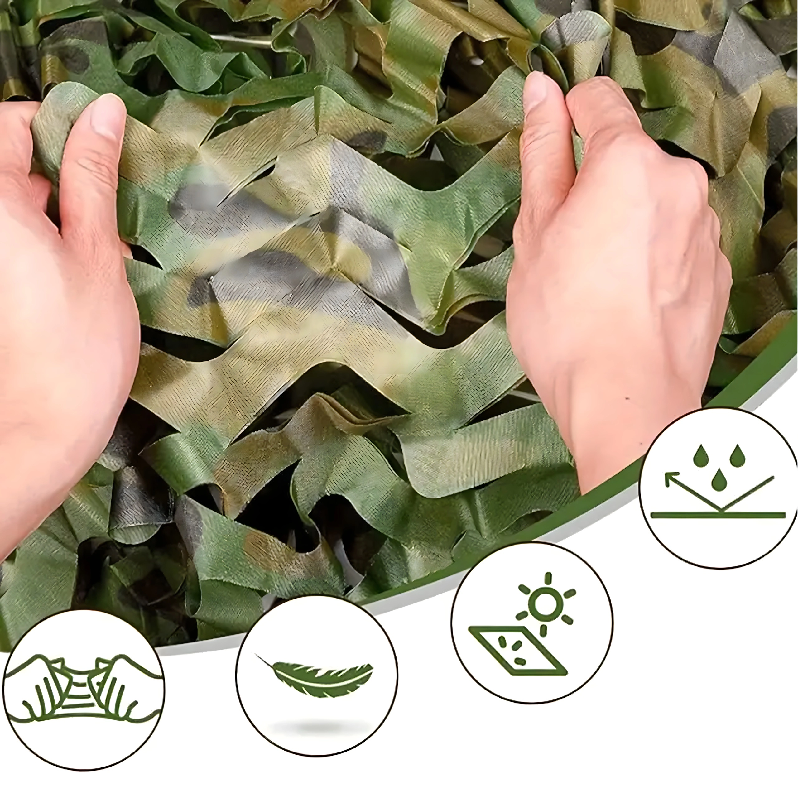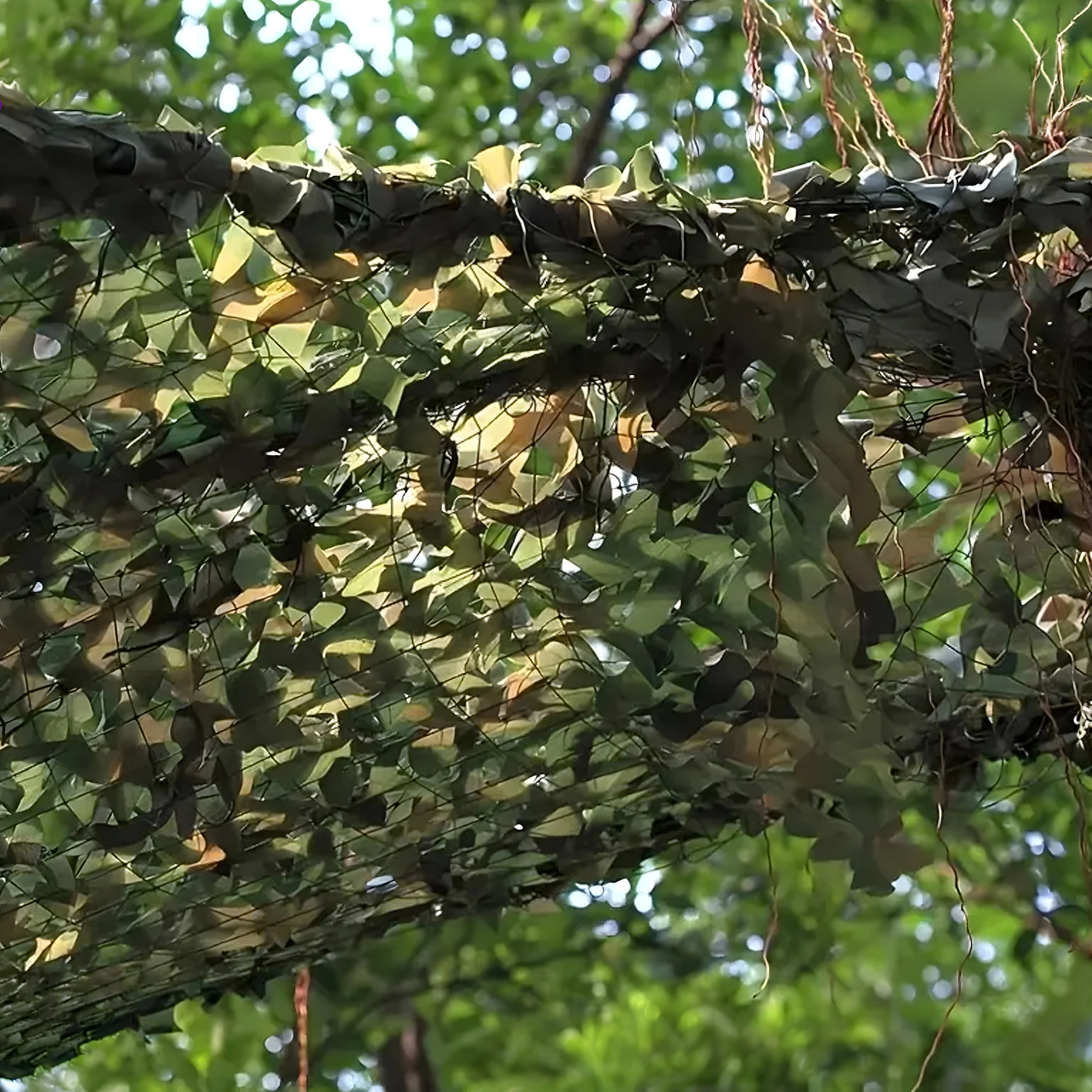 Ce filet de camouflage en tissu Oxford associe faible poids et haute résistance pour un usage extérieur quotidien. Le motif moro à découpes feuillagées laisse passer l’air, crée un ombrage agréable et assure un masquage visuel de structures, clôtures, équipements ou espaces détente.