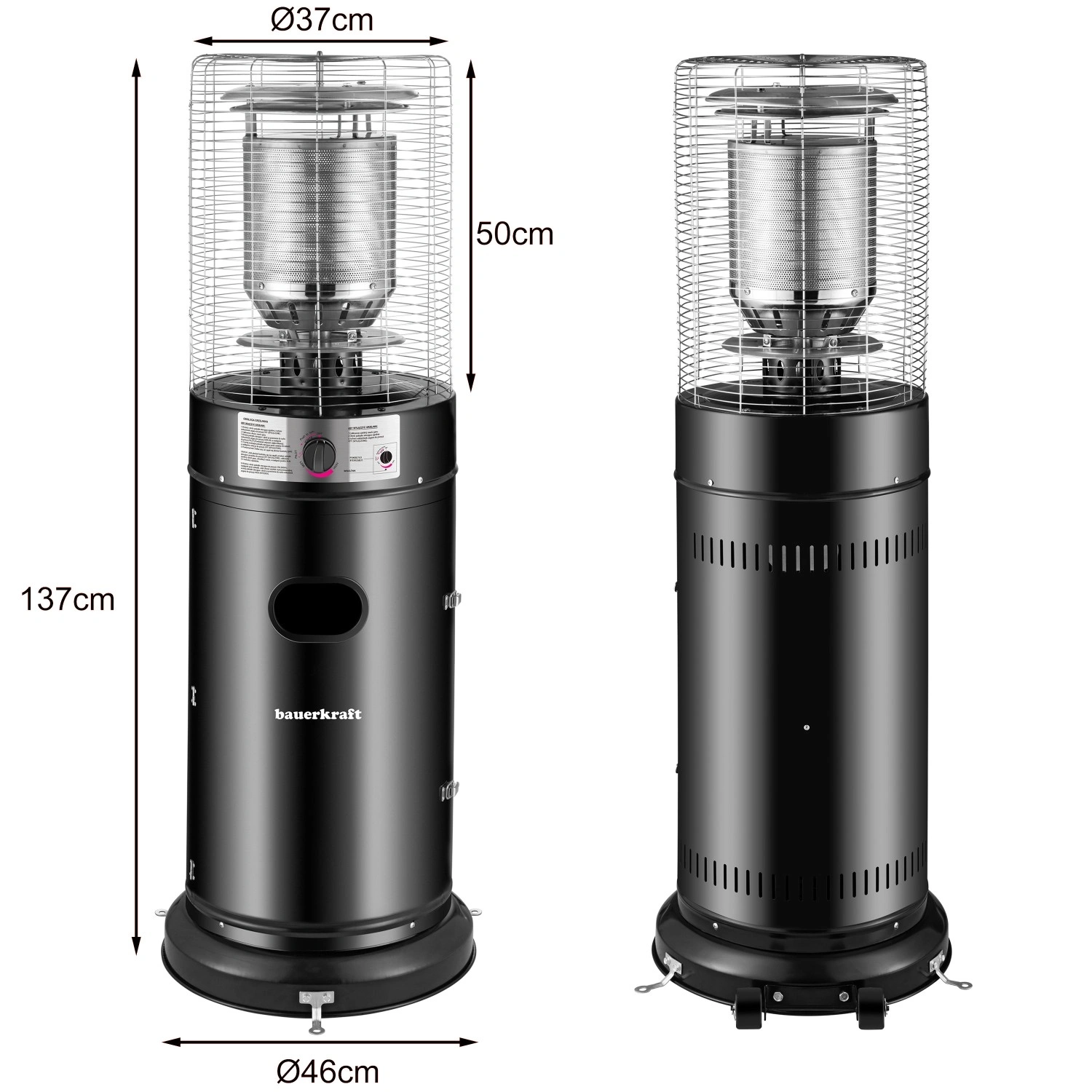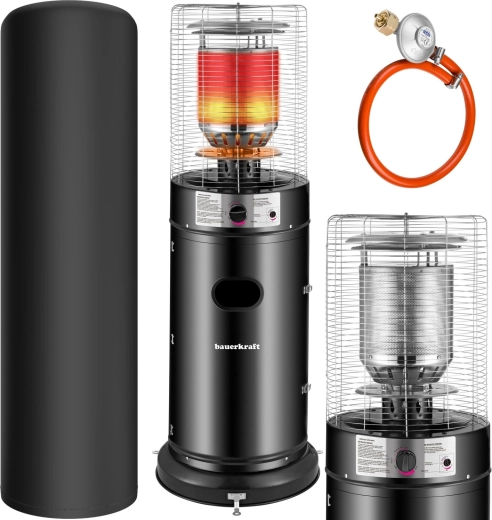 Profitez de la chaleur sur votre terrasse toute l’année grâce à ce chauffage au gaz compact d’une puissance de 11 kW. Sa structure en acier stable, le réglage continu de la température, l’allumage piézo et les roulettes pour un déplacement aisé en font un choix idéal pour les terrasses, jardins et patios de restaurants. Sont inclus un détendeur de pression, un tuyau de gaz avec colliers et une housse de protection imperméable.