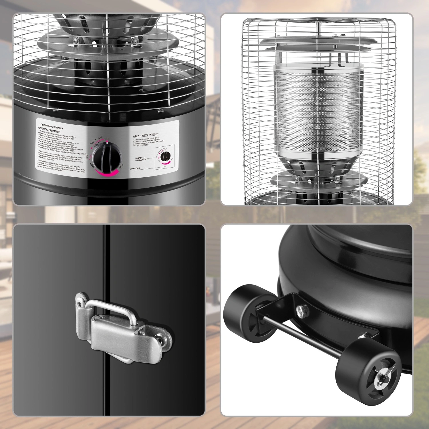 Ce chauffage de terrasse au gaz transformera votre jardin ou balcon en un refuge confortable, même par temps frais. Son design cylindrique moderne avec corps métallique et écran en verre s’intègre élégamment aux espaces privés comme aux lieux commerciaux. Grâce à sa chaleur rayonnante efficace, il assure un confort thermique agréable lors des moments partagés en famille ou entre amis.
