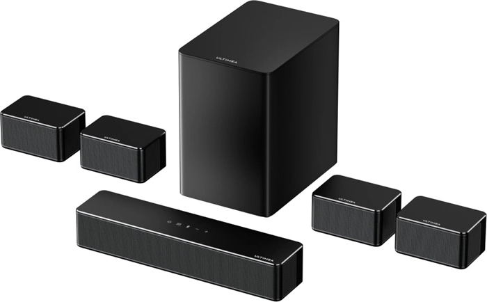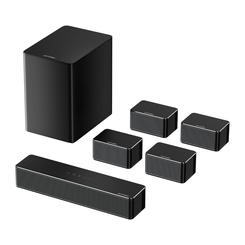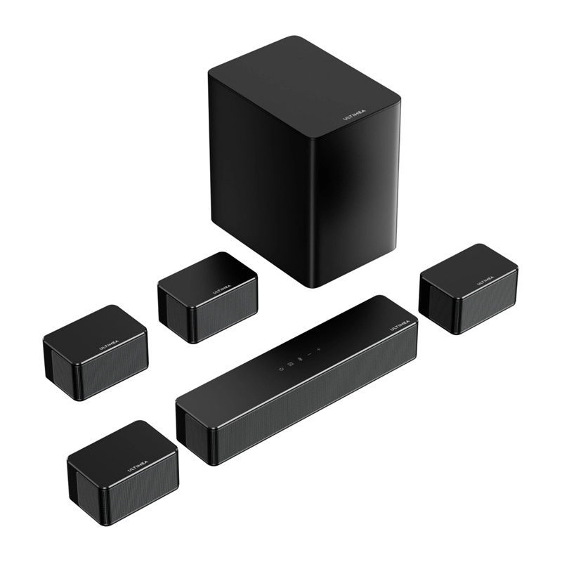 L’ULTIMEA Poseidon D70 apporte à votre salon un son surround 7.1 d’une puissance totale de 410 W. La combinaison de quatre enceintes satellites, d’une barre de son centrale et d’un caisson de basses sans fil de 6,5" crée un large champ sonore avec une localisation d’effets précise – idéal pour les films, les jeux et la musique. Les technologies SurroundX™ et la gestion par IA mettent en valeur les détails subtils et apportent de l’authenticité aux scènes.