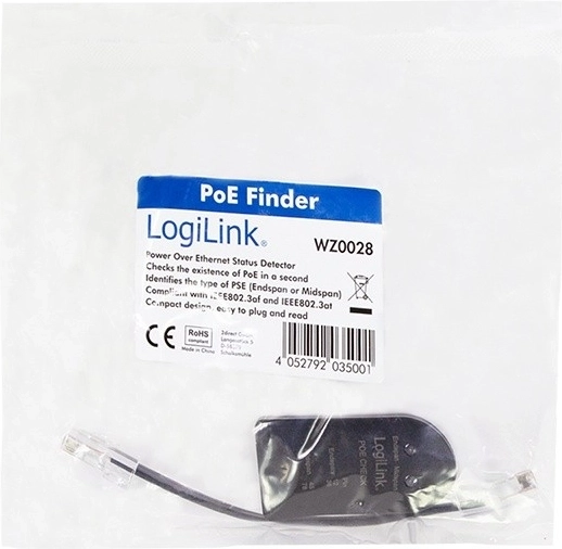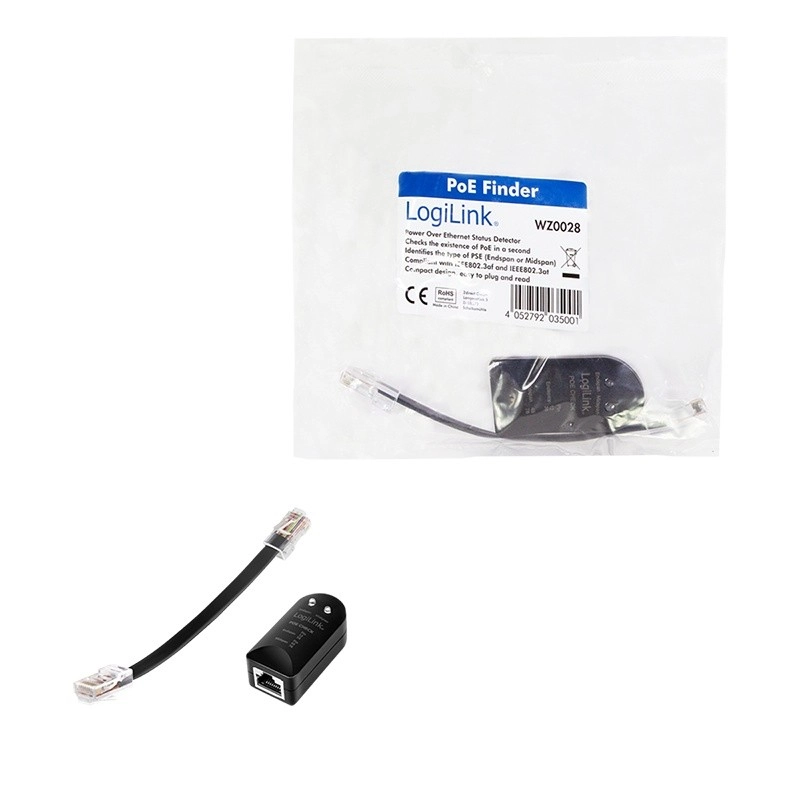 Gagnez du temps lors du diagnostic réseau grâce au testeur de câbles universel LOGILINK. L’appareil permet de vérifier facilement le câblage et la continuité des conducteurs, d’identifier rapidement les problèmes de base du câblage et de confirmer en toute sécurité la présence d’alimentation PoE. Le pratique PoE Finder détermine avec précision si l’alimentation est active sur les paires terminales (1–2/3–6) ou centrales (4–5/7–8).