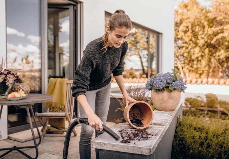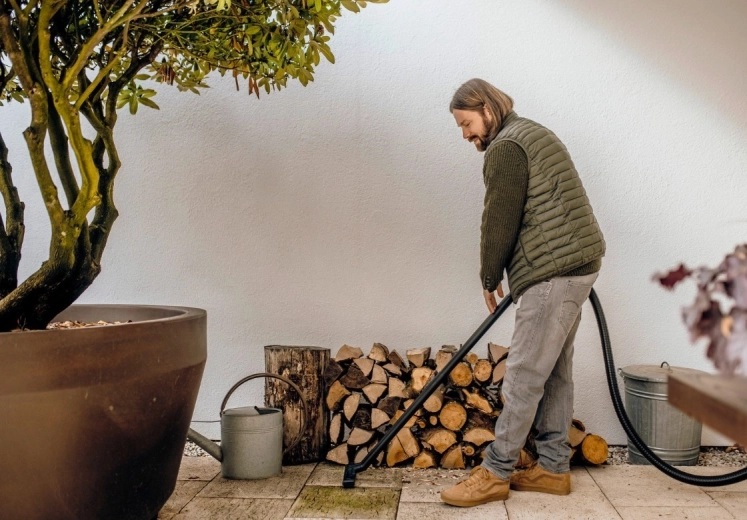 Grâce à sa conception compacte, à son câble d’alimentation de 4 m et à son flexible d’aspiration de 2 m, vous atteignez partout où vous en avez besoin. Des supports pratiques pour les accessoires, un crochet pour le câble et la possibilité d’accrocher le flexible sur la tête de l’appareil économisent de la place et gardent tout à portée de main. La fonction soufflerie aide là où l’aspiration n’est pas possible – par exemple pour ôter les feuilles et saletés des fentes.