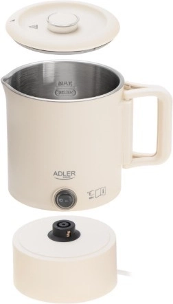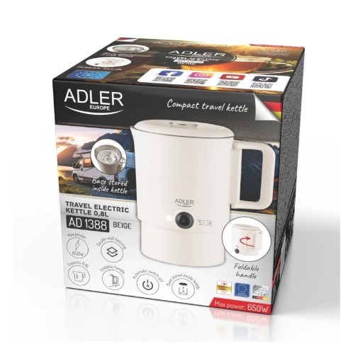 Profitez d’une boisson chaude à tout moment et partout. La bouilloire de voyage ADLER AD 1388 associe une construction légère et robuste à des détails pratiques pour une utilisation confortable en déplacement. Le récipient intérieur en acier inoxydable SUS204 est hygiénique et facile à nettoyer, tandis que la coque extérieure en polypropylène résistant protège contre les brûlures.