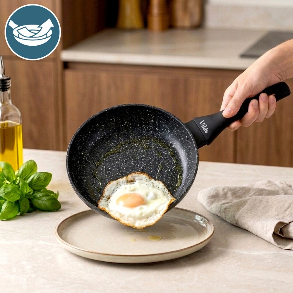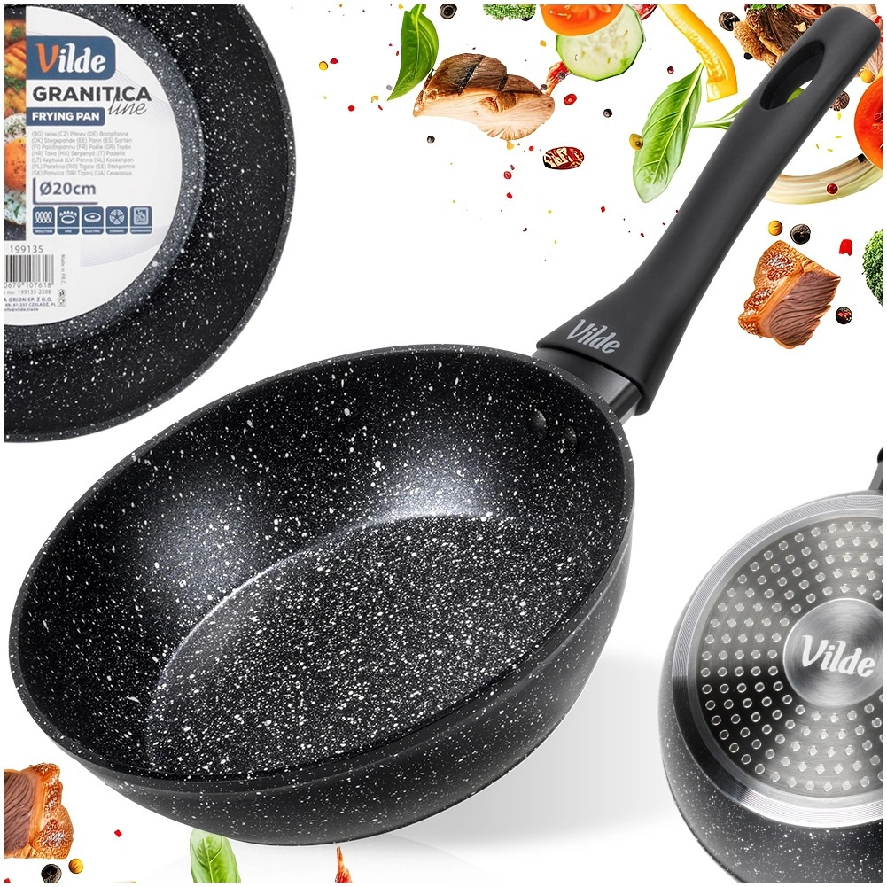 Poêle élégante et durable de la ligne Granitica, fabriquée en fonte d’aluminium avec un revêtement granit (pierre) antiadhésif, qui permet de cuisiner avec un minimum de matière grasse et facilite le nettoyage. Grâce à son format compact de 20 cm, elle est idéale pour les œufs, les légumes, de petites portions de viande et le réchauffage rapide.
