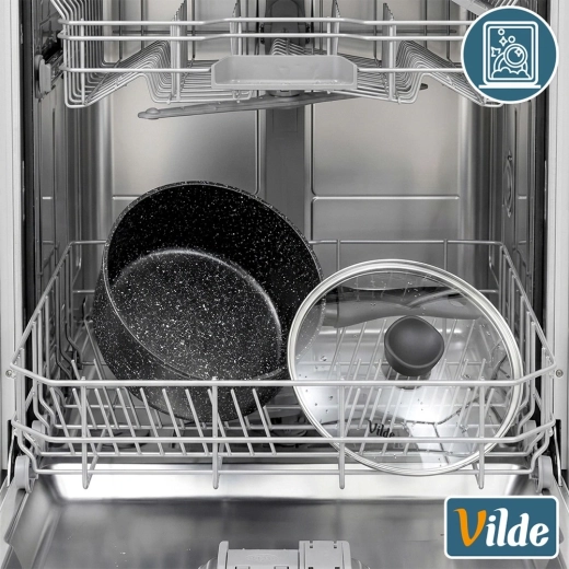 La casserole compacte Vilde de la ligne GRANITICA d’un diamètre de 16 cm et d’un volume de 1,1 l est idéale pour la cuisine quotidienne. Grâce au revêtement granit antiadhésif, vous préparez des plats avec un minimum de matières grasses, le couvercle en verre avec orifice d’échappement de vapeur facilite le contrôle de la cuisson et la poignée ergonomique soft touch assure une prise en main sûre. Compatible avec tous les types de plaques, y compris l’induction, et lave-vaisselle.