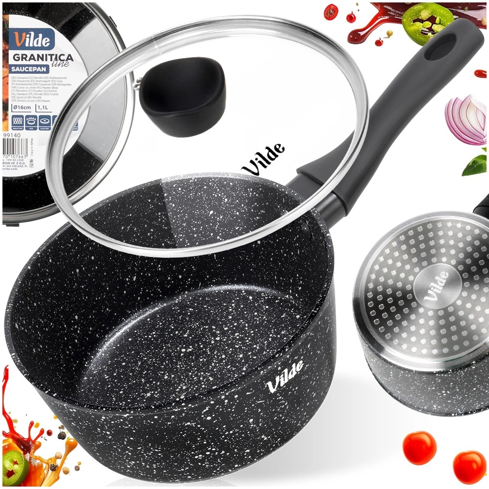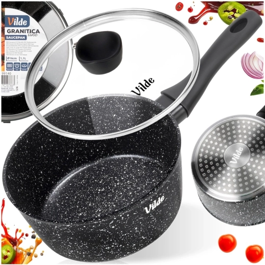 Casserole avec revêtement granit et couvercle en verre 16 cm, 1,1 l Vilde GRANITICA