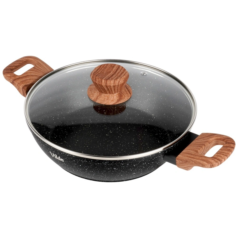 Poêle profonde pratique de 2,2 l avec couvercle en verre pour la cuisine quotidienne. Grâce au revêtement granit antiadhésif, à la répartition uniforme de la chaleur et aux poignées soft touch aspect bois, vous préparez facilement des plats frits, mijotés ou gratinés avec un minimum de matière grasse. Le couvercle en verre résistant à la chaleur avec valve vapeur permet de contrôler la cuisson en toute simplicité. Compatible avec induction, gaz, électricité et vitrocéramique et lavable au lave-vaisselle.