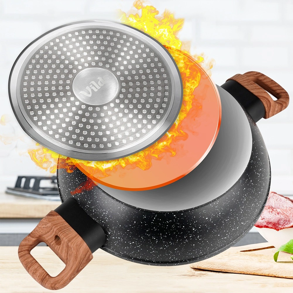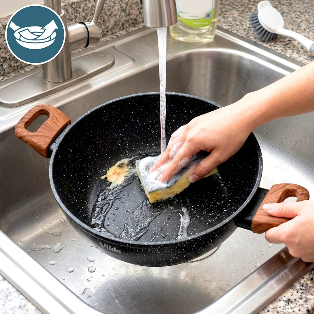 Le revêtement granit durable assure une montée en température homogène et un démoulage facile des aliments sans attacher. Idéal pour une cuisine plus saine et un nettoyage rapide.
