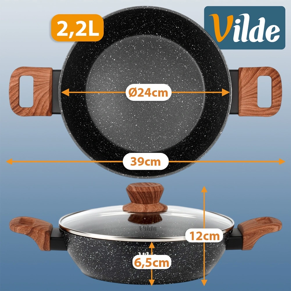 Poêle profonde en granit avec couvercle en verre 24 cm, 2,2 l