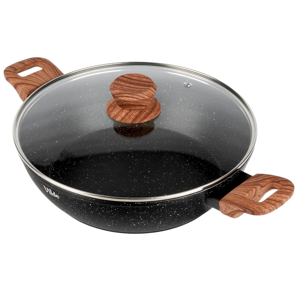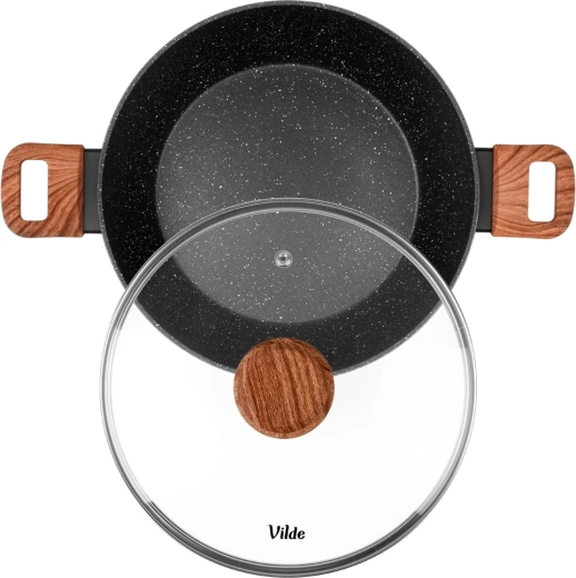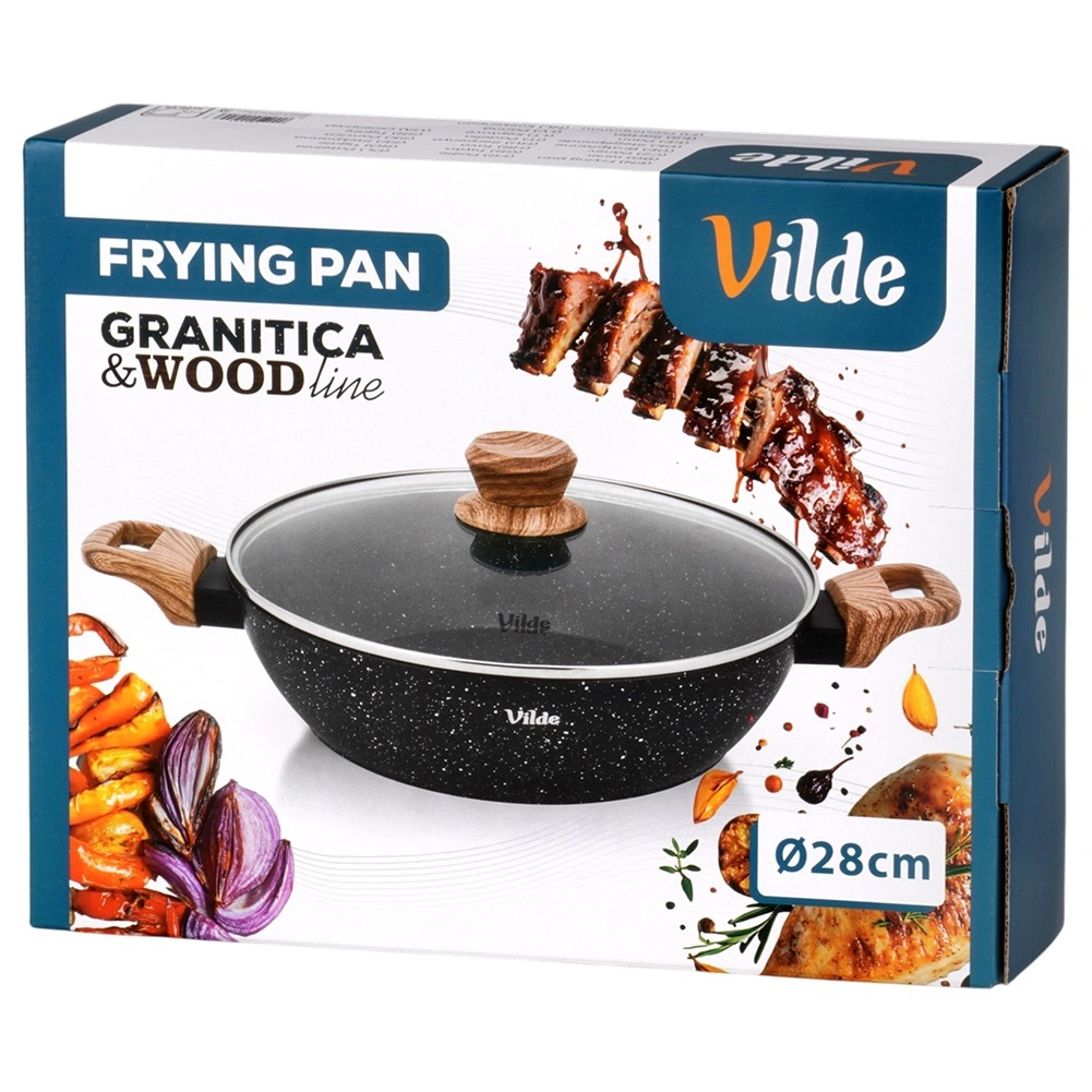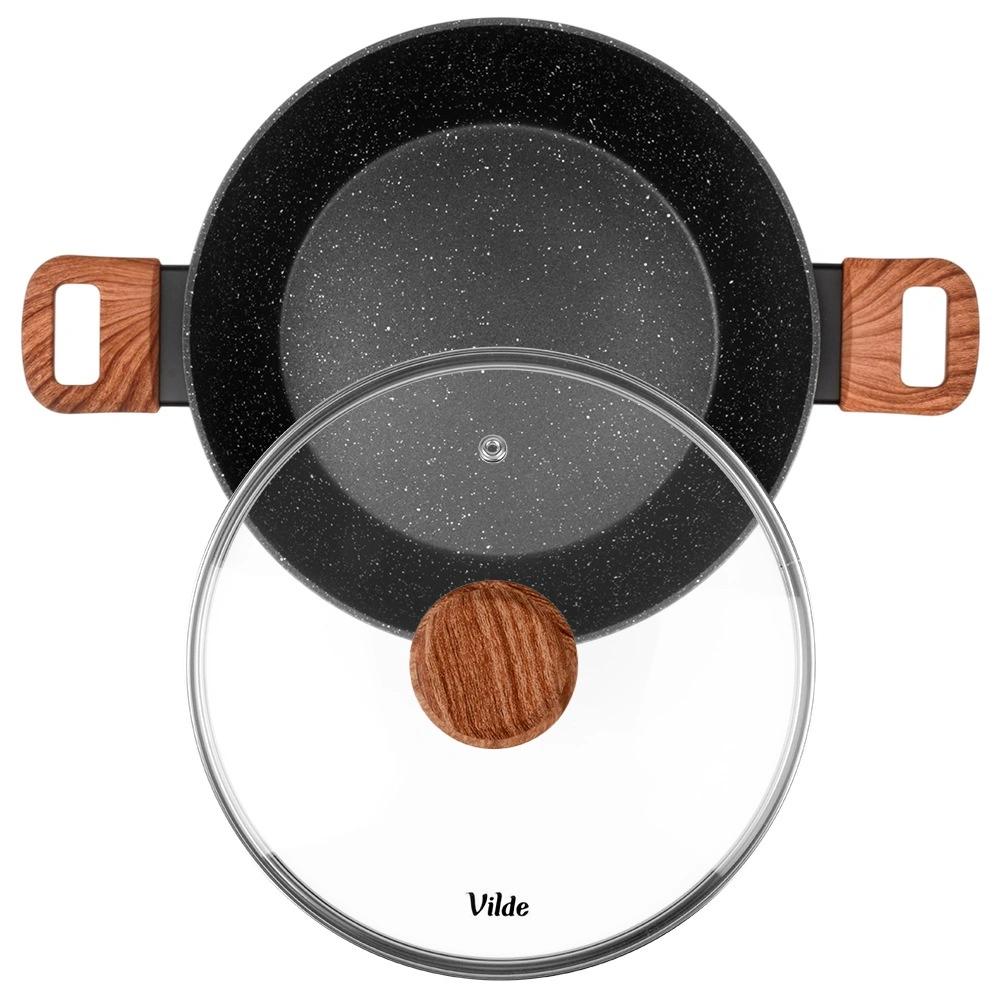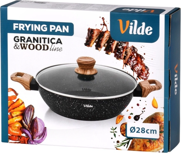 Poêle profonde en granit avec couvercle en verre 28 cm, 3,5 l – Vilde Granitica Wood