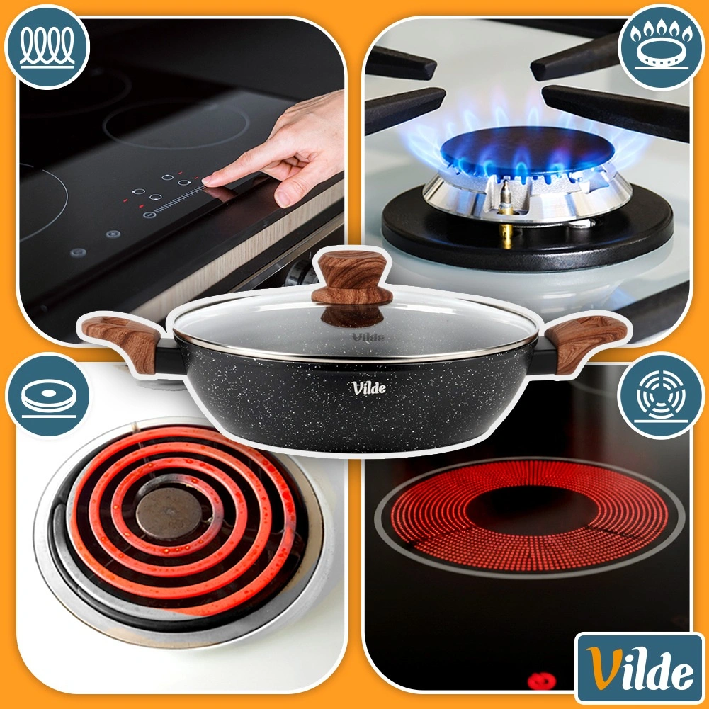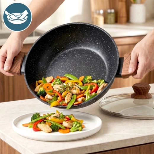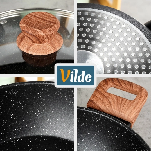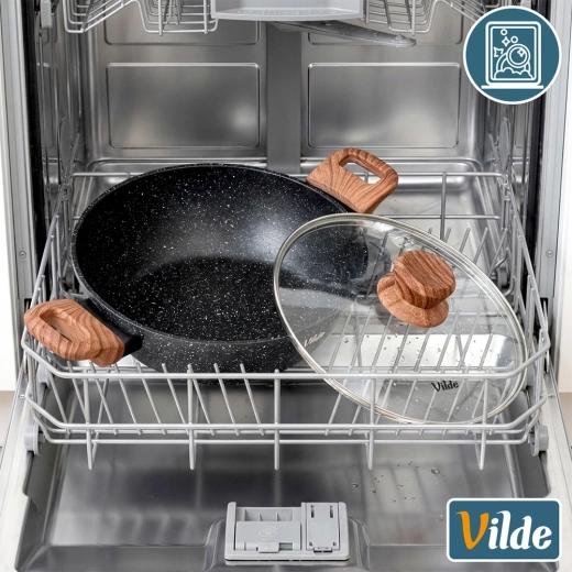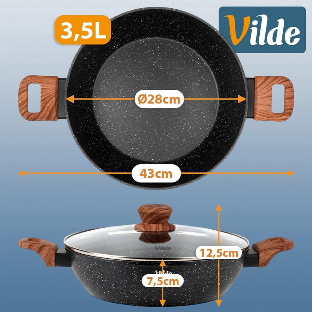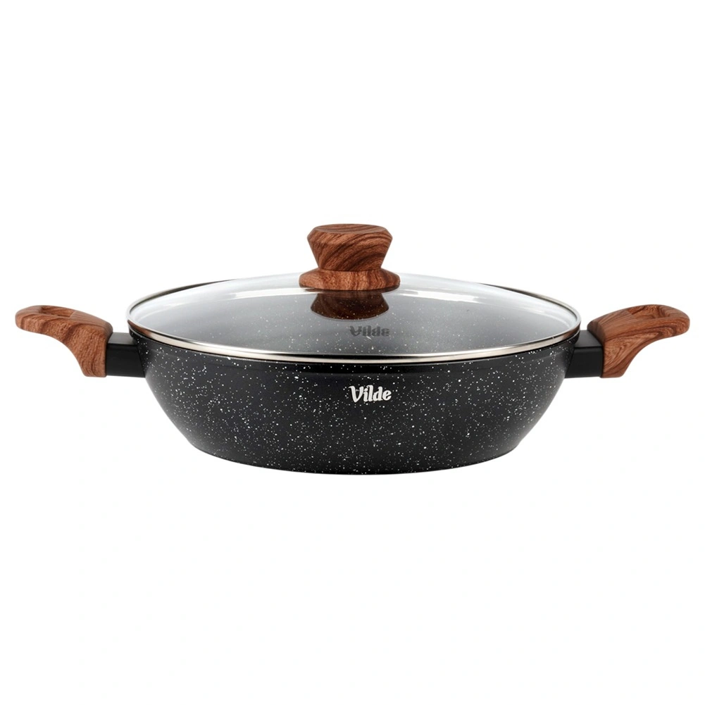 Poêle profonde en granit avec couvercle en verre 28 cm, 3,5 l – Vilde Granitica Wood