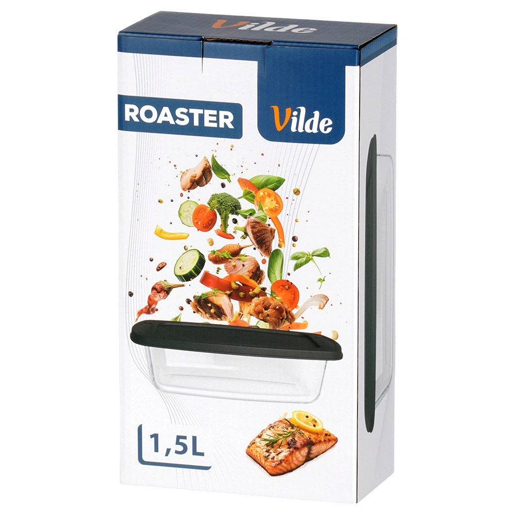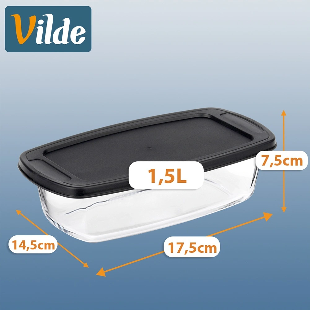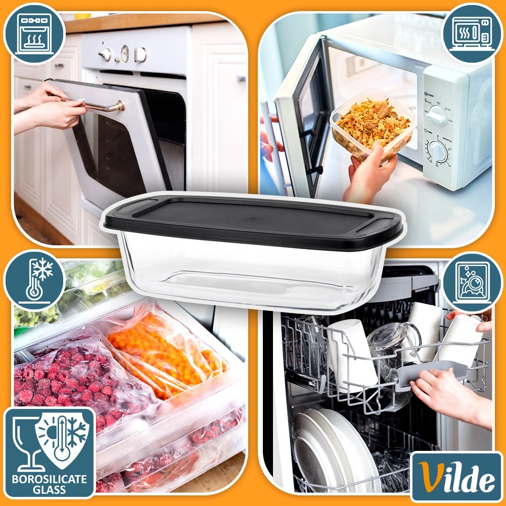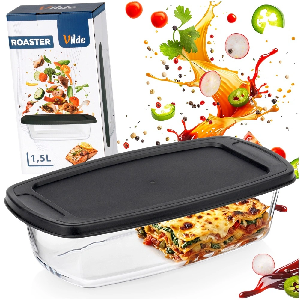 Plat en verre universel d’une capacité de 1,5 l avec un couvercle noir pratique, idéal pour cuire, gratiner et conserver les aliments. Le verre borosilicate résistant supporte des températures de -30 °C à +400 °C (couvercle de -18 °C à 120 °C), parfait pour le four, le micro-ondes, le réfrigérateur et le congélateur. Les poignées intégrées facilitent la manipulation et le couvercle hermétique aide à garder les aliments frais plus longtemps.
