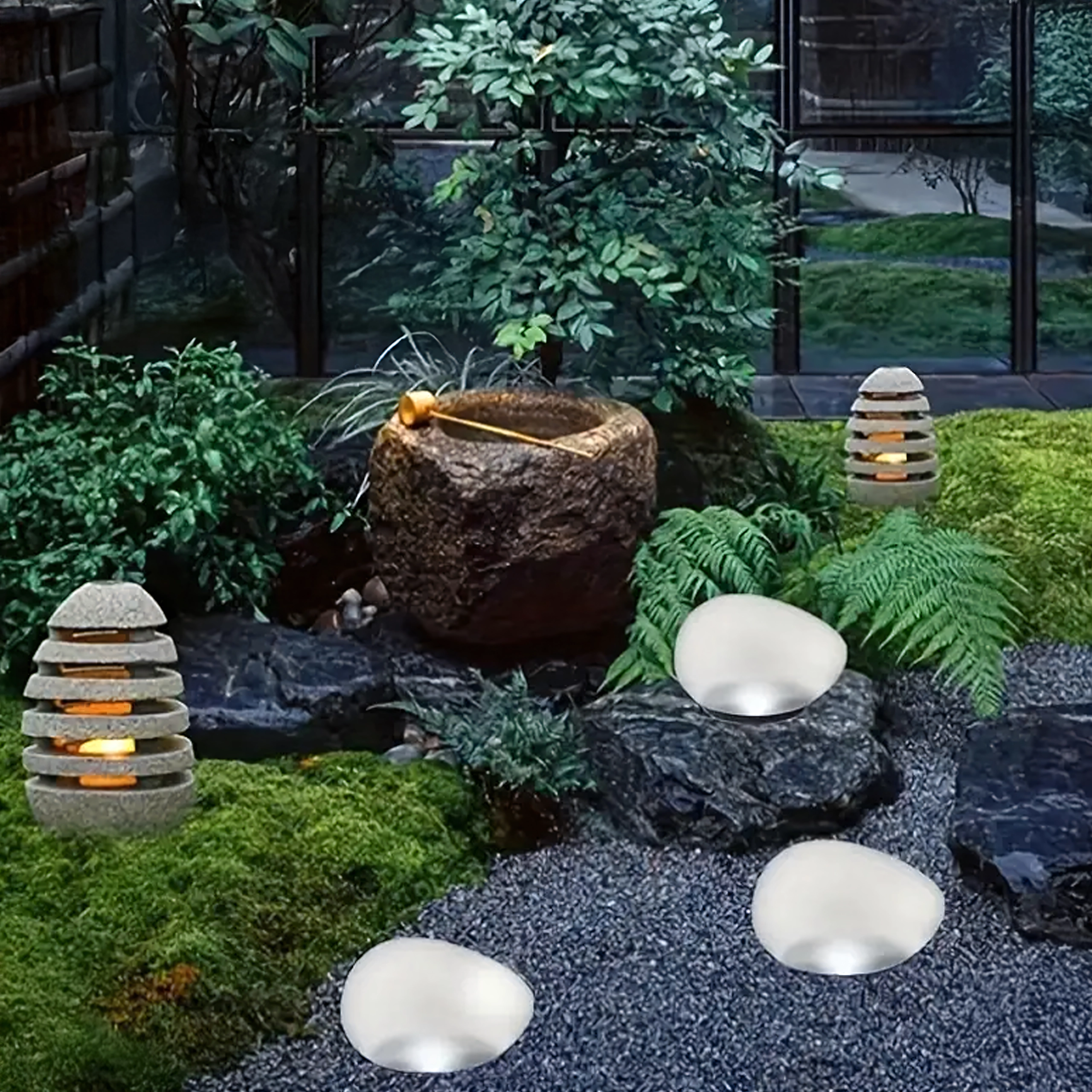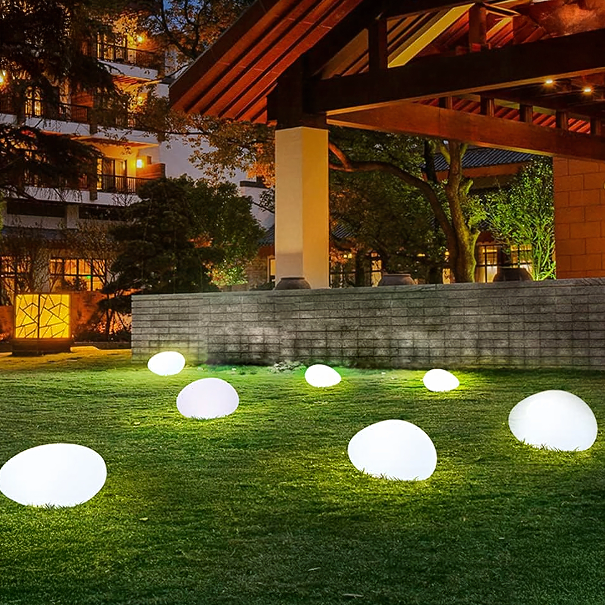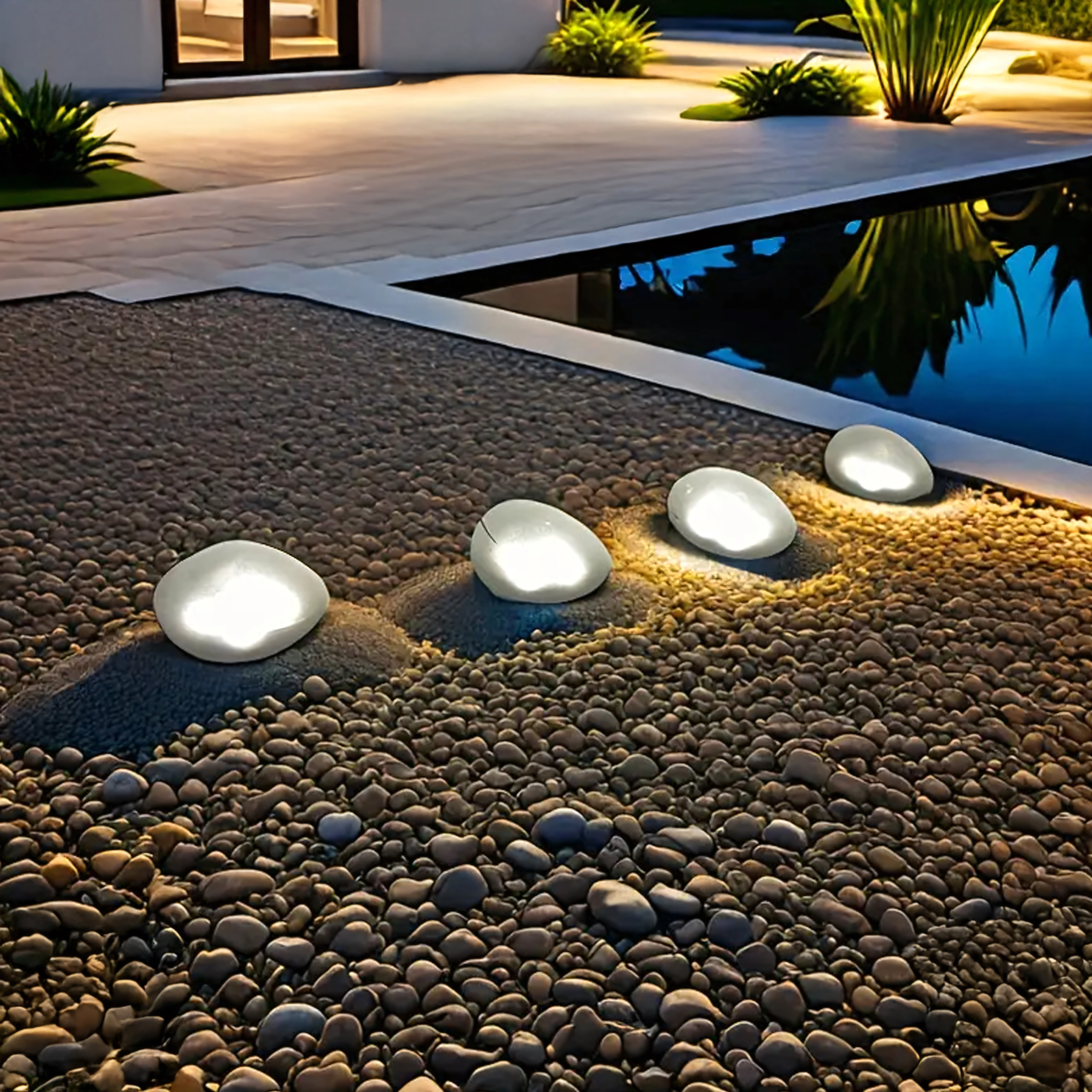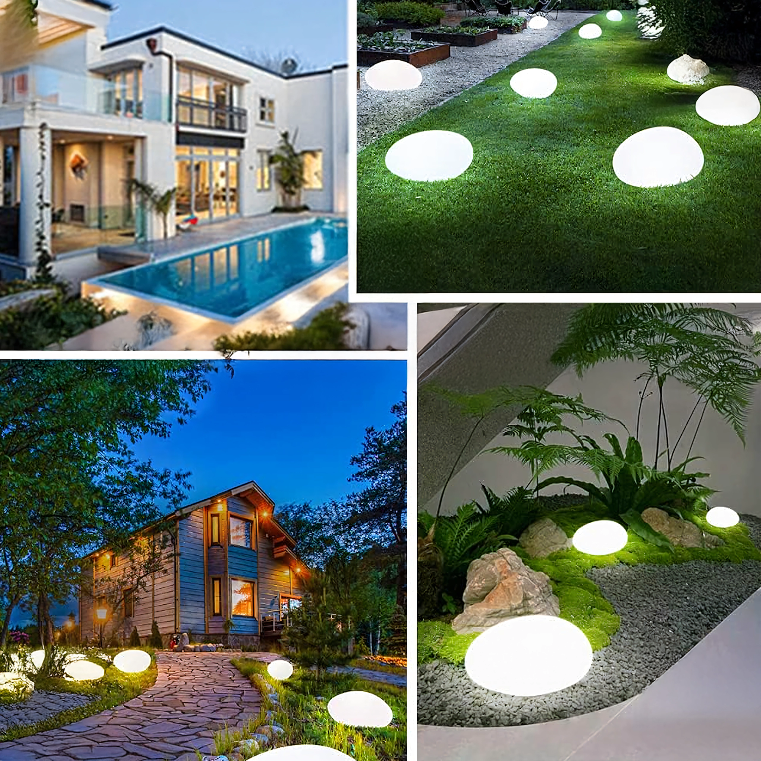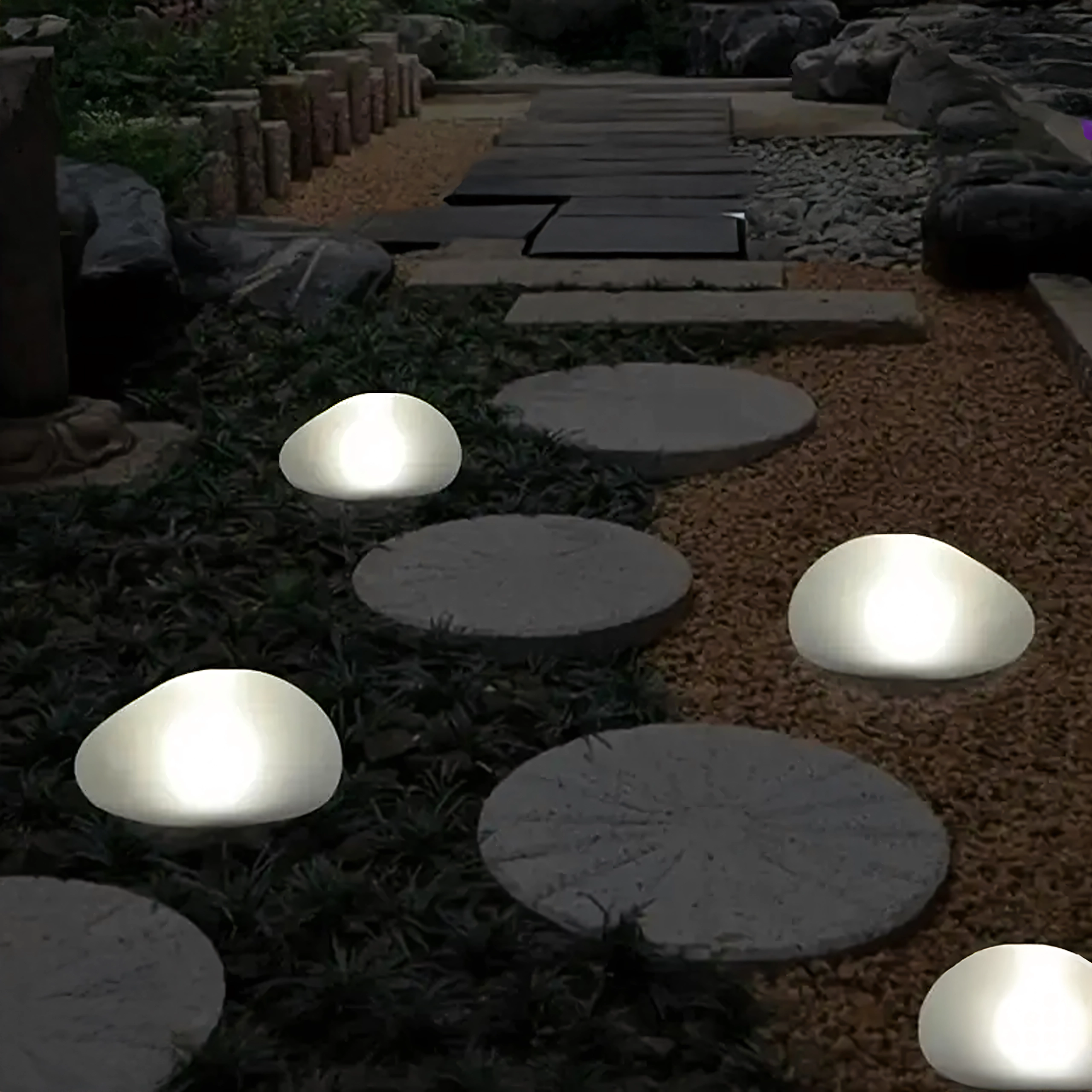 - Design discret – forme de galet s’harmonisant naturellement avec les pierres décoratives et les massifs.