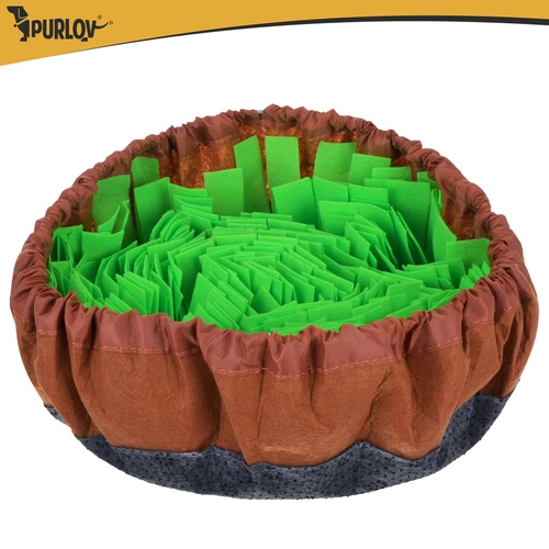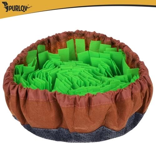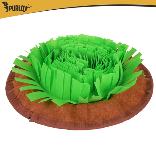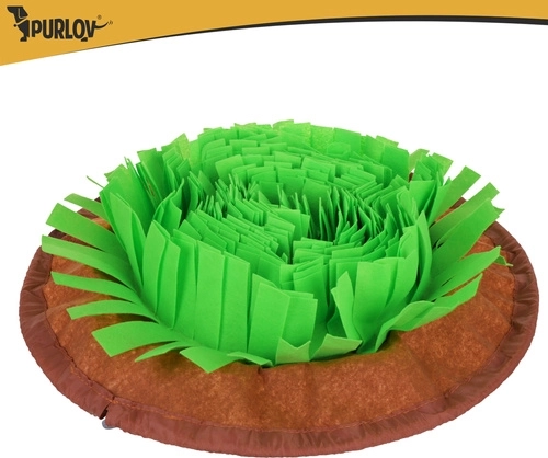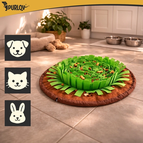 Le tapis de fouille PURLOV transforme le repas en jeu utile. Les couches denses de bandes douces à l’aspect «herbe» dissimulent la nourriture pour que le chien engage son instinct le plus naturel: l’odorat. Cela permet de ralentir l’ingestion, favorise la stimulation mentale et améliore la concentration et l’apaisement.