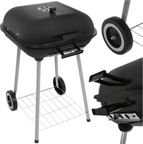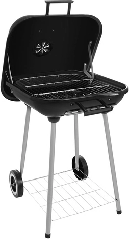 Deux roulettes de transport, plusieurs poignées et une étagère inférieure en fil métallique facilitent le déplacement du barbecue et offrent de la place pour le charbon, les briquettes ou les ustensiles – tout est à portée de main.