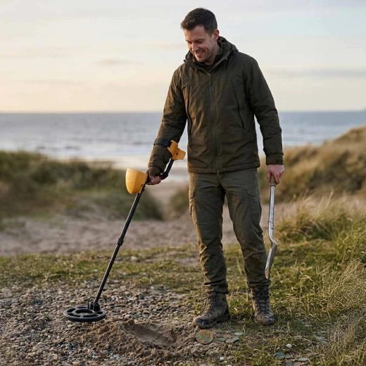 La bobine de recherche résiste à l’eau pour des prospections en eau peu profonde. La tige télescopique s’adapte à la taille de l’utilisateur et améliore l’ergonomie lors des recherches prolongées.