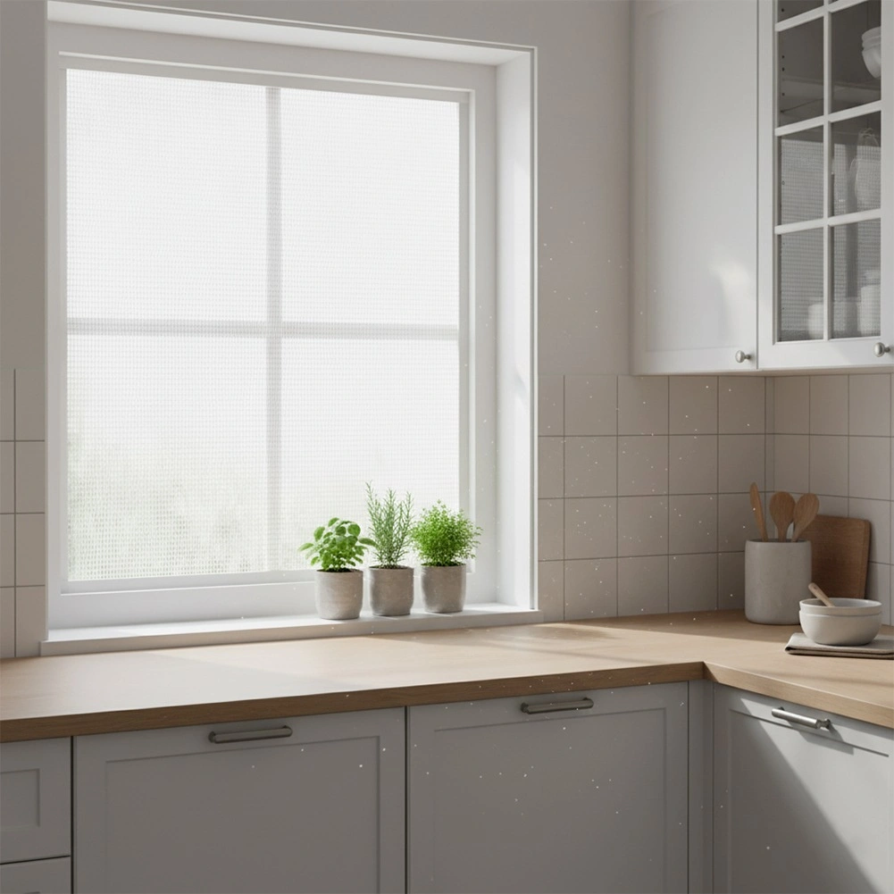 Le maillage blanc serré bloque efficacement les insectes tout en laissant passer la lumière et l’air, afin de conserver la clarté et la vue depuis la fenêtre.