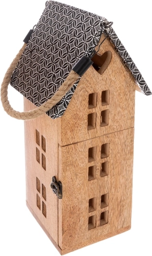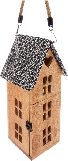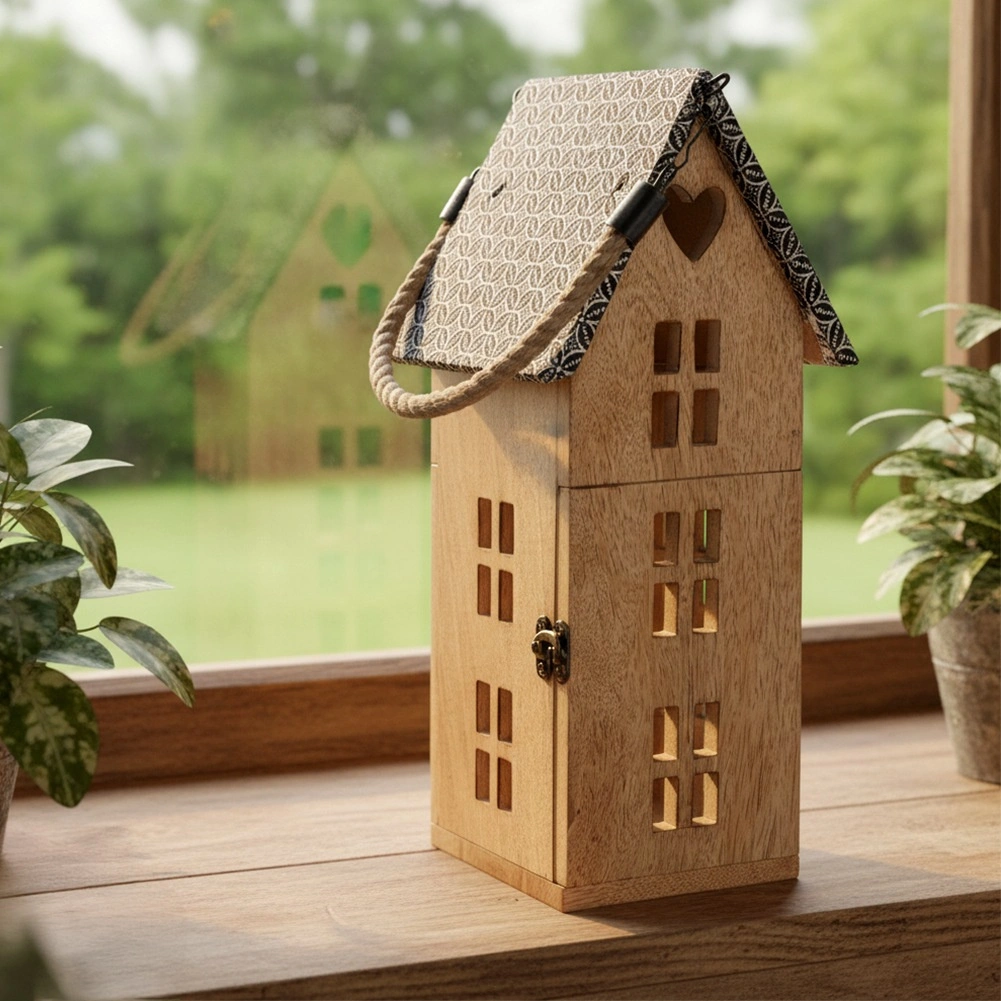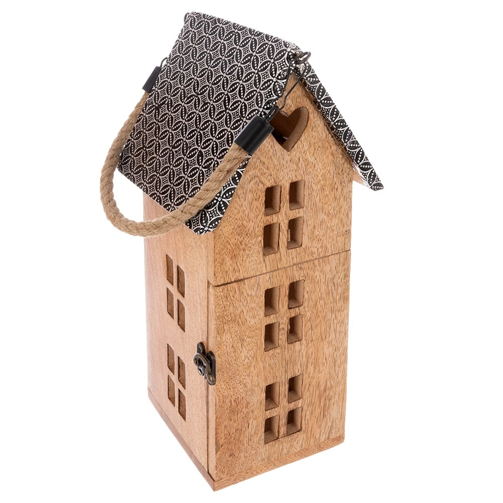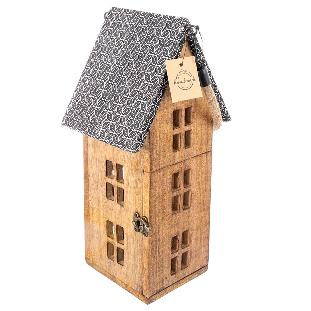 Découvrez une lanterne unique en forme de maisonnette qui crée une atmosphère chaleureuse dans le salon, la chambre ou sur une terrasse couverte. Façonnée à la main en bois de manguier, elle se distingue par son veinage et ses teintes naturelles, s’accordant parfaitement aux styles moderne et campagnard. Le toit en métal et la quincaillerie de qualité assurent une longue durée de vie, tandis que la bougie LED offre une utilisation sûre, sans fumée ni suie.