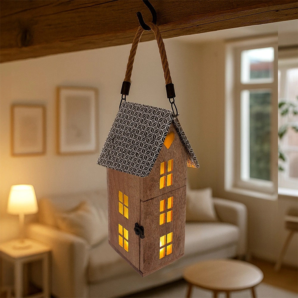La poignée amovible en corde permet un transport et une suspension faciles. Placez la lanterne sur une commode, une étagère ou un rebord de fenêtre, ou suspendez-la pour des effets lumineux encore plus marquants à travers les petites fenêtres de la maisonnette. Idéale comme décoration toute l’année ou comme accent saisonnier pour les fêtes et les soirées.