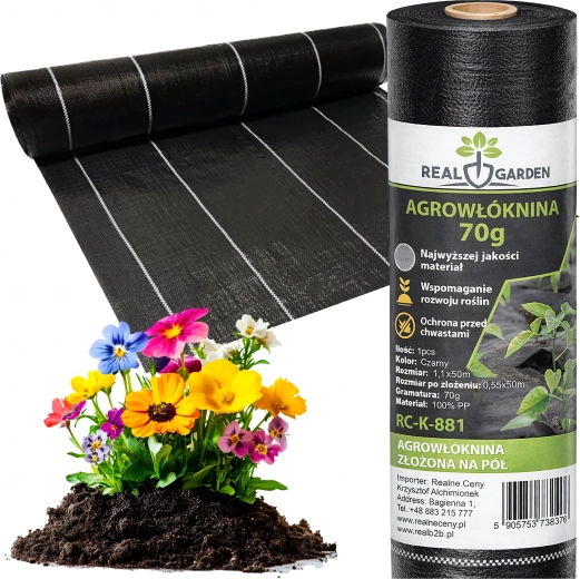 Le rouleau est livré plié en deux pour une manipulation plus simple (largeur du rouleau plié 55 cm, déplié 110 cm). Le matériau est stabilisé UV pour une longue durée de vie au soleil et résistant à la déchirure. Convient sous l’écorce de paillage, les pierres décoratives et comme support pour les bacs de culture.