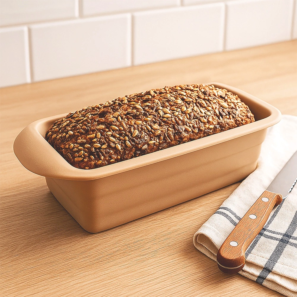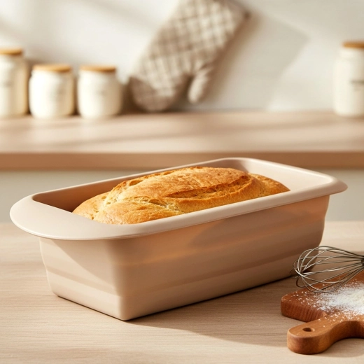 Ce moule en silicone beige est idéal pour la cuisson du pain maison, des pâtes à babka et briochées, des cakes ainsi que des terrines. Grâce à son matériau souple et antiadhésif, la pâte n’attache pas, le pain se démoule facilement et le moule se nettoie aisément. Une qualité éprouvée qui offre des résultats fiables à chaque fournée.