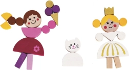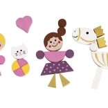 Les pièces en bois colorées et aimantées se combinent facilement pour former des personnages, des animaux et des châteaux. Les enfants créent leurs propres contes et scènes selon leur imagination.